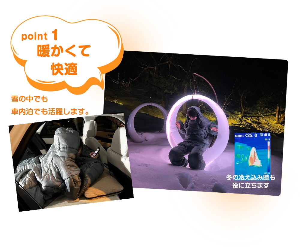 この着る寝袋は、暖かくて快適です! サーモグラフィーでわかるように寒い季節でも安心。