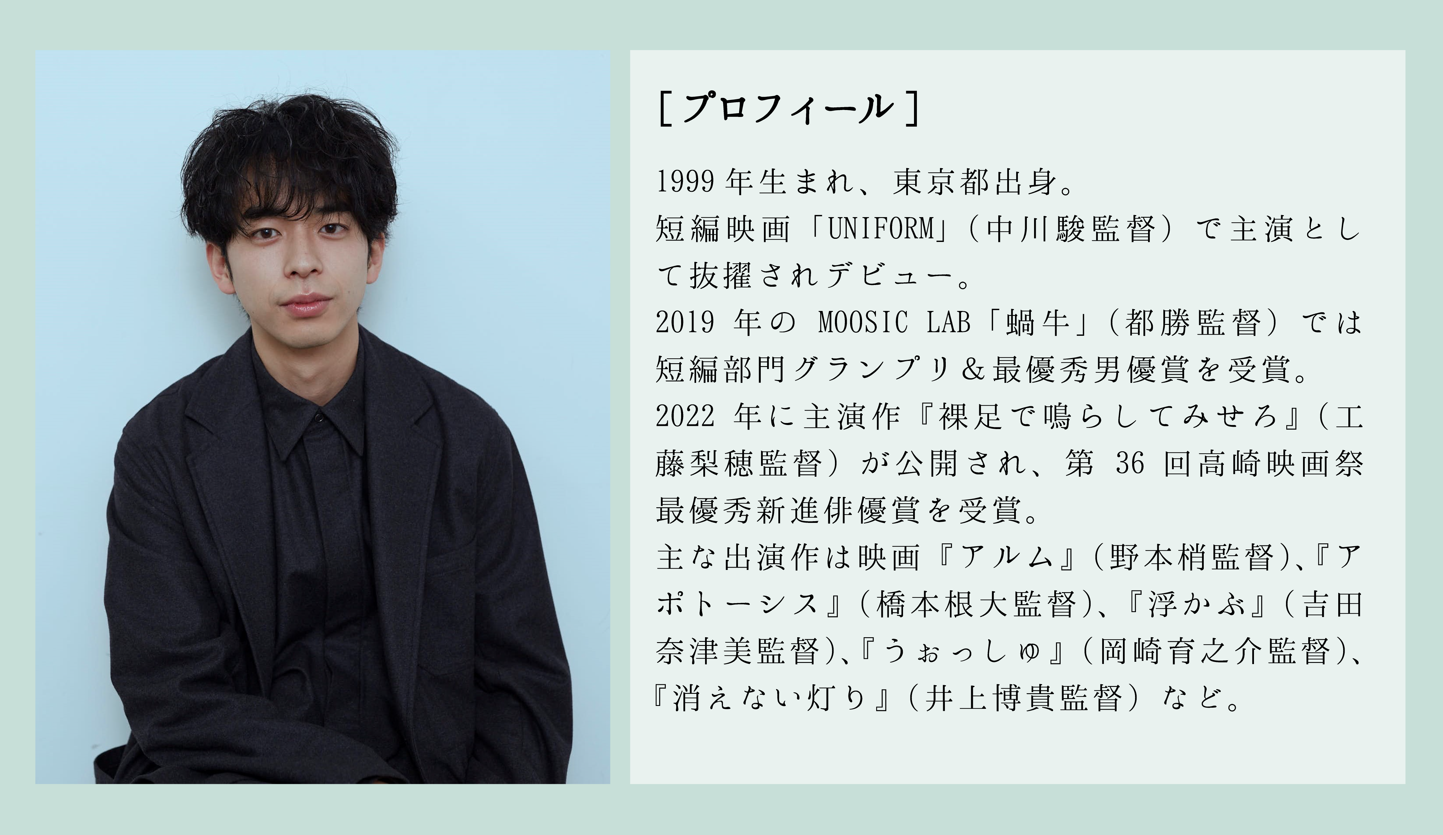 福井県池田町に滞在しながらの撮影という、役者としてとても贅沢な体験を、余すことなく作品に注いで、今の僕にしか出せない色で、形で、そこに誠太として存在できたらなと思っています。