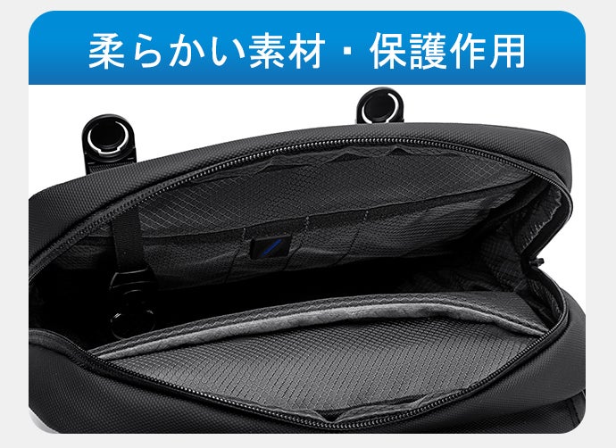 コンパートメントの内部は柔らかい素材で、クッション性に優れているので、9.7インチのiPadを入れても壊れる心配はありません。