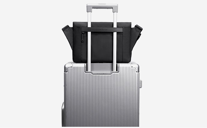 旅行や出張の際は、アークティックハンターをスーツケースに取り付けることで、肩の負担を軽減することができます。