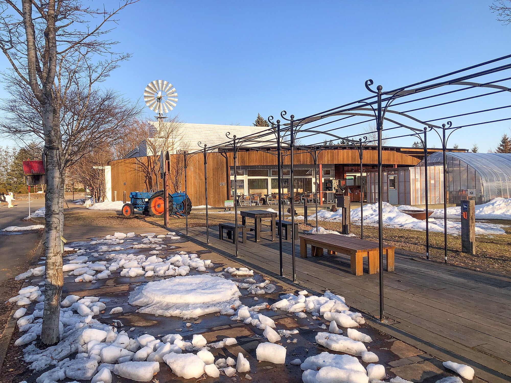 『麦音』は、場所は十勝平野の中心・帯広市にあり、なんと敷地面積は11,000平方メートル。単独ベーカリーとしては日本一の敷地面積を誇ります。その広大な土地には広い庭と小麦畑。その景色を眺めながら、店内のイートイン(カフェ)スペースで焼きたてのパンを楽しめます。冬でも野外でのイートインが楽しめるよう、ビニールハウスが大小あわせて3棟設置されています。その広い敷地を利用して野外ならではの冬遊びを演出します。ぶらっとお買物ついでに立ち寄ってもらえるような気軽で楽しいレクリエーションをご提供したいんです。