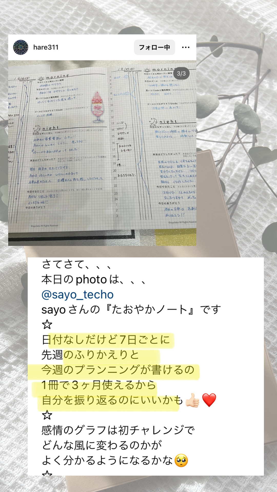2024/01/04 14:56本年もどうかよろしくお願いいたします。元日から心揺さぶられるニュースが続いておりますね…能登やその周辺の皆様、羽田空港での事故の関係者の皆様のことをお祈りしております。心配にもなるし心もズーンともなる。このノートをご支援くださった中にも被災された方もいらっしゃいます。今、ここから心配のエネルギーを送るより明るさと元気のパワーを送ることに専念し今は、自分にできることを地道にやっていくのみ!と思っております^^さて、昨年はクラウドファンディングではたくさんのご支援を本当に本当にありがとうございました。たおやかノートの今後の販売先はhttps://resast.jp/stores/article/26396/69877↑こちらで承っております。よかったらぜひご利用くださいませ。また、お問合せもインスタグラムhttps://www.instagram.com/sayo_techo/公式LINEhttps://lin.ee/Y5WAI2で承ります。たおやかノートの書き方もhttps://youtu.be/QnVd1KRhxRk?feature=sharedこちらでシェアしております。よかったら^^ではでは皆様!たおやかな年をお過ごしください〜!!! もっと見る