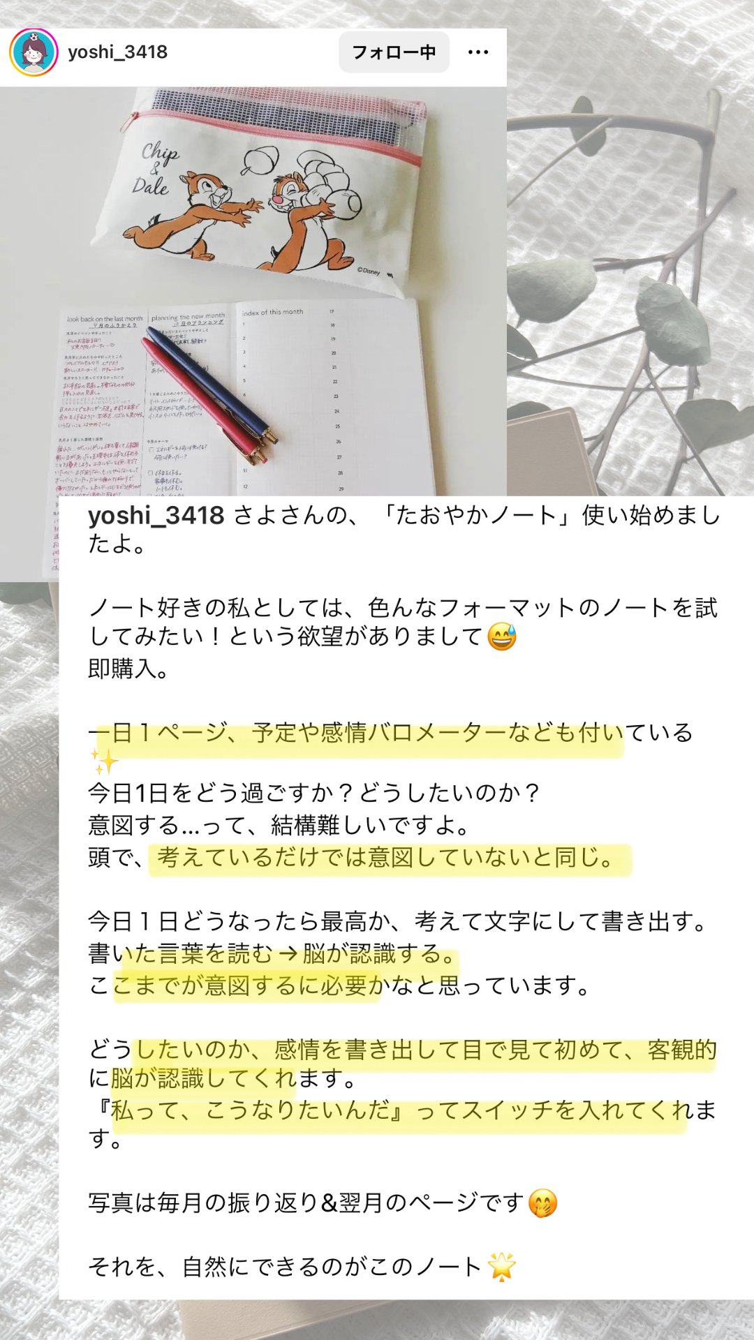 2024/01/18 14:58皆様こんにちは!感染症も流行っている中花粉症も感じてる方がいらっしゃるとか!?皆様体調いかがでしょうか?ぜひたおやかノートで心と体の声聞いてあげてくださいね!さて。先日1/13にたおやかノートスタートアップレッスンが行われました。ご参加くださった皆様本当にありがとうございました。こちら、やっぱり参加したかった、と言うお声もいただいておりました。また、私もこれは皆様に伝えたい〜!!と思い、動画販売を決定いたしました。動画販売はこちら↓/https://mosh.jp/services/157626\よりご購入いただけます。1月中のみの限定価格!!!!2月1日より値上がりします!今のうちにご購入いただいてぜひご活用ください。動画はご購入後、期限なくご覧いただけます!!わからないことなどおありでしたら遠慮なくさよのInstagramhttps://www.instagram.com/sayo_techo/や公式ラインhttps://lin.ee/Y5WAI2へメッセージくださいね!!また、書き方講座も無料でyoutubeにて公開しております。よかったらご覧ください^^https://youtu.be/QnVd1KRhxRk?feature=sharedそして追加のたおやかノートご購入はこちら↓https://resast.jp/stores/article/26396/69877より承っております^^では!またお会いできる日を楽しみにしております^^機嫌よくやんなさいよ〜!! もっと見るノートのお稽古サロンへのご招待