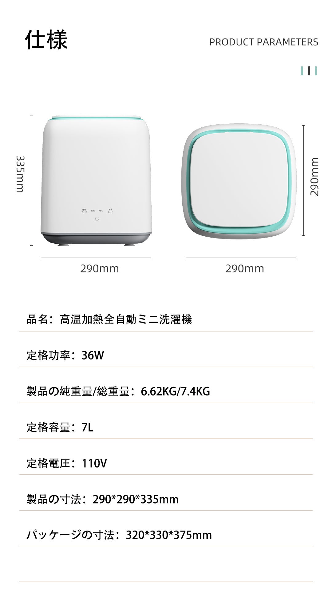 「全自動高温加熱ミニアジテータ洗濯機」本体×1