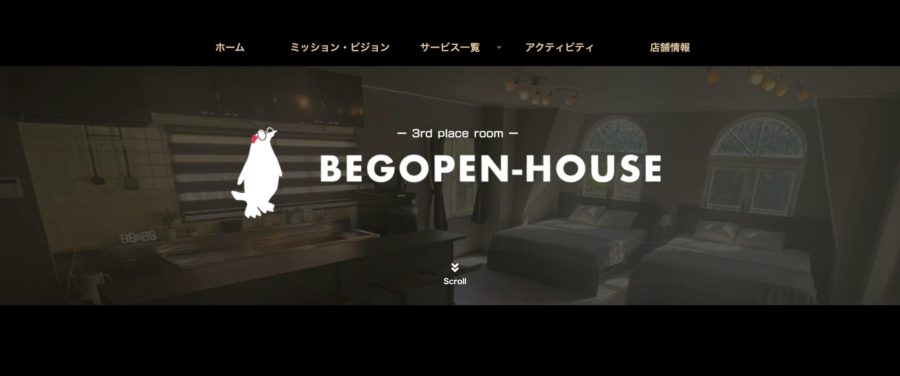 BEGOPEN(ベゴペン)は、代表の久保嶺(クボ レイ)を中心に立教大学と九州大学の学生で発足した事業グループです。MISSION「誰もが人生のトリガーに巡り合える社会を実現する」VISION「一人ひとりのWish(実現したいこと)を後押しする」ことを掲げて、現在はサードプレイスルーム"BEGOPEN-HOUSE"を運営しています。