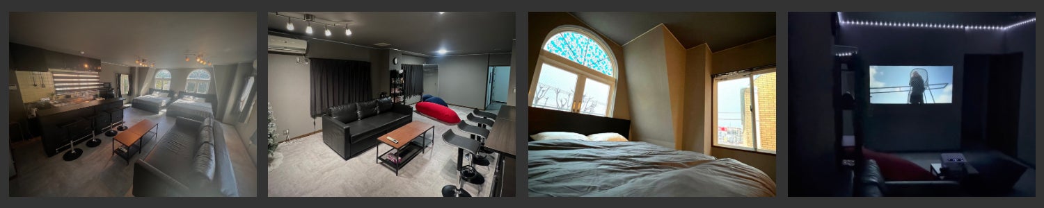 部屋の中には、オープンキッチンにバーカウンター、そしてクイーンベッドがなんと2台!雰囲気を変えられる色付き照明やプロジェクターなど一味も二味もあるお部屋に仕上げているのが自慢となっています。実は、この部屋のデザインは僕と大学の友人らで1から決めて築25年の祖父母の家を自分たちでリノベーションして創り上げたんです。