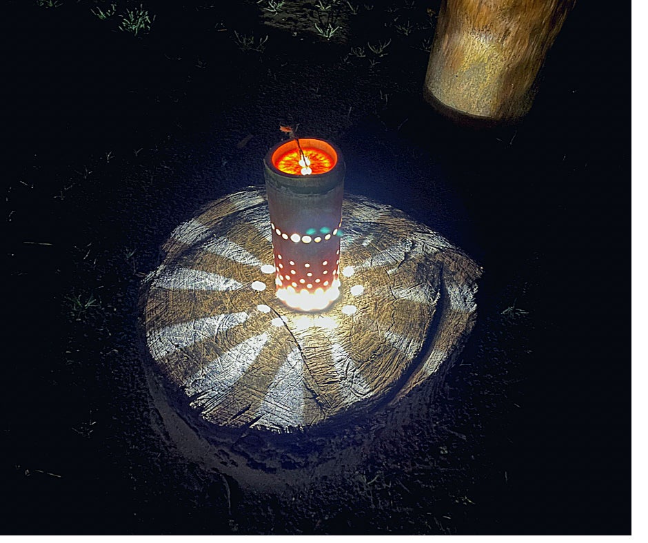 お返しとして、「縁側にて。小さなキャンプ場の小さな音楽フェス」当日のステージの飾り付けに参加できます。こちらで個々の方の竹灯りを灯します。