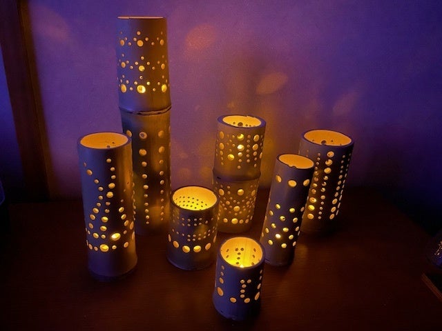 2024/01/29 21:19竹灯りを御支援頂いた方改めてありがとうございました!キャンドルホルダー、ランタンシェードのサイズは個体差があります。左から2番目で高さが30㎝です。この大きさを基準にしたいと思います。まだデモの段階ですが、出来上がったら随時ご報告致します。イベント時は飾らせて頂き、その後発送となりますので、しばらくお待ちください。 もっと見る