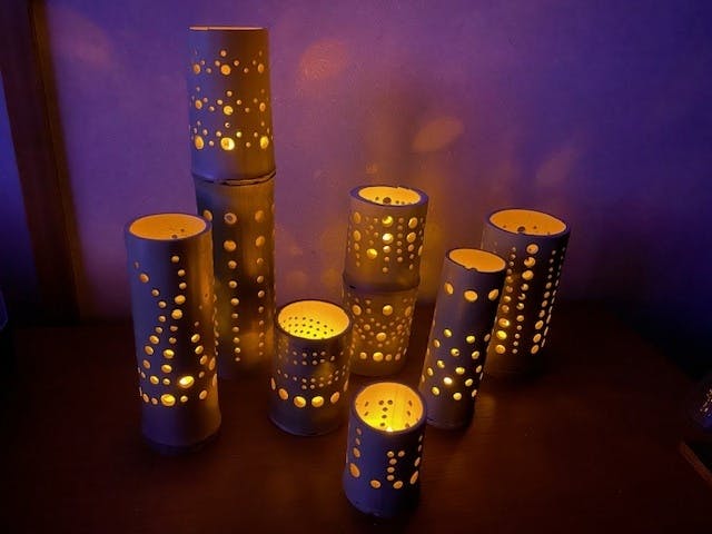 2024/01/29 21:19竹灯りを御支援頂いた方改めてありがとうございました!キャンドルホルダー、ランタンシェードのサイズは個体差があります。左から2番目で高さが30㎝です。この大きさを基準にしたいと思います。まだデモの段階ですが、出来上がったら随時ご報告致します。イベント時は飾らせて頂き、その後発送となりますので、しばらくお待ちください。 もっと見る
