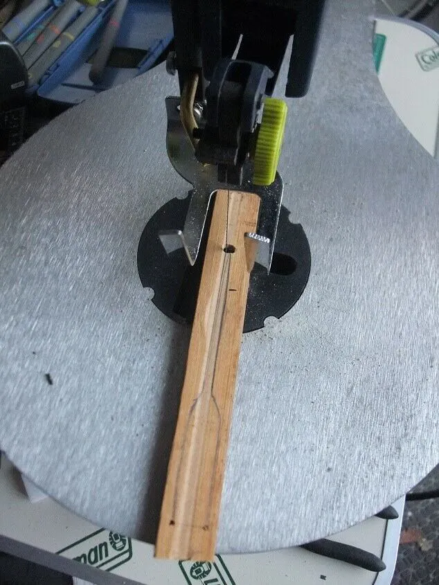振動弁となる切れ目を糸鋸でつくり、音のでる工夫をして作ります。