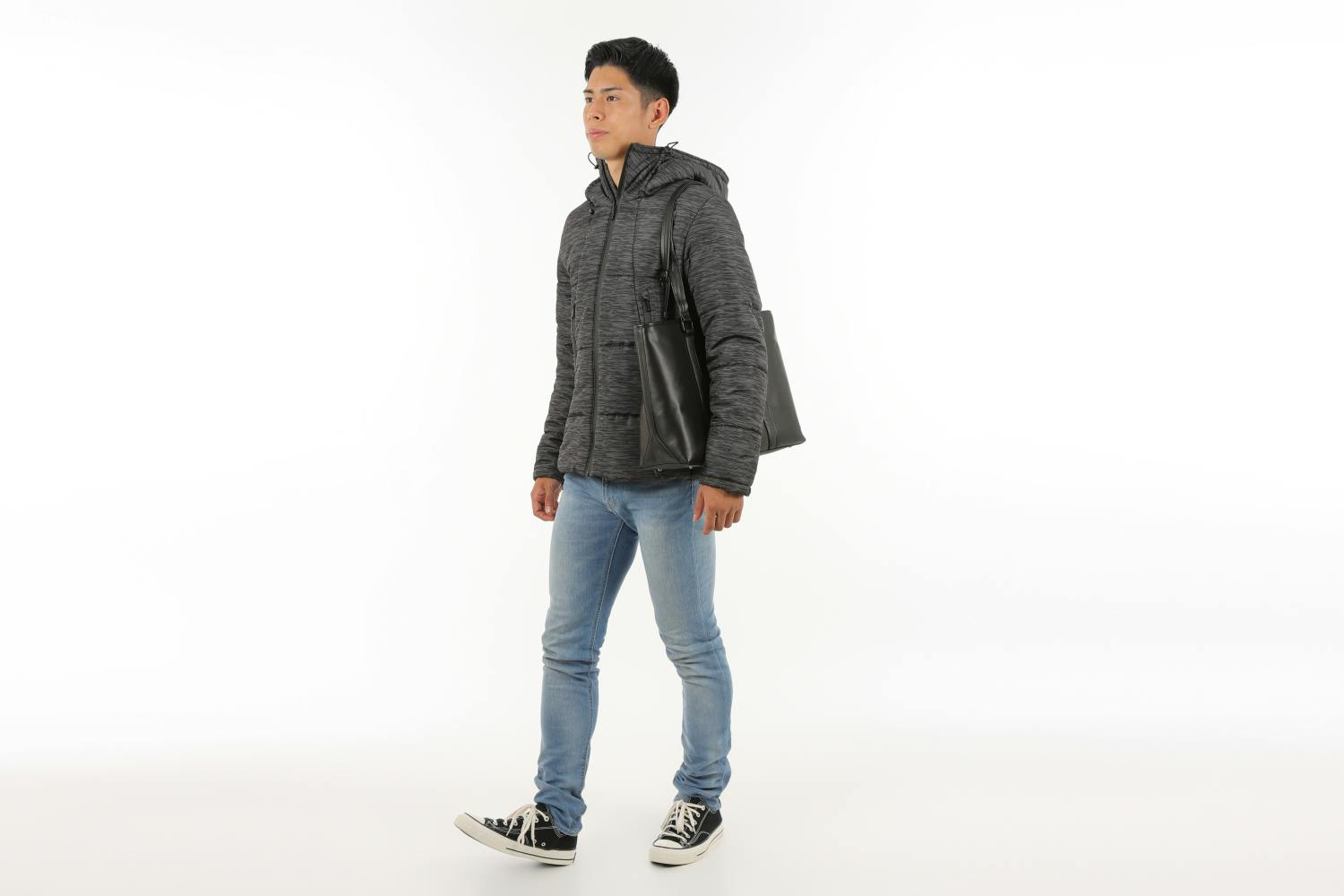 ①持ち手の高さが15㎝~30㎝まで無段階調節可能、手持ちからダウンコートを着る冬場の肩掛け利用でも、窮屈な肩回りから解放です。