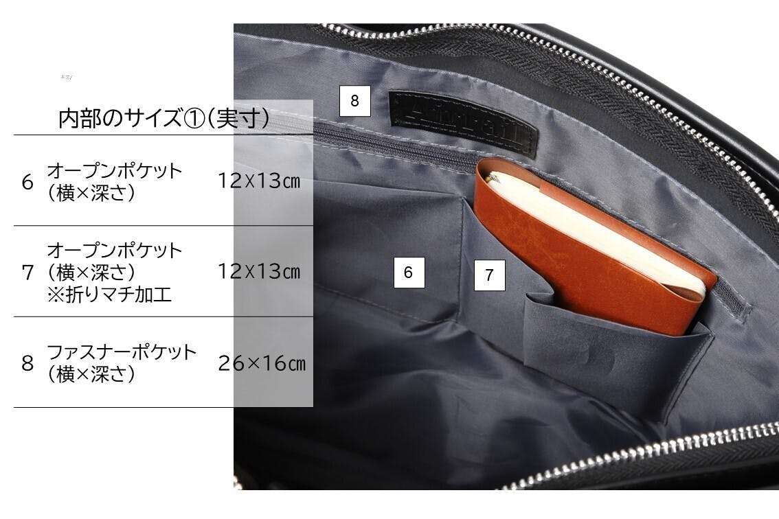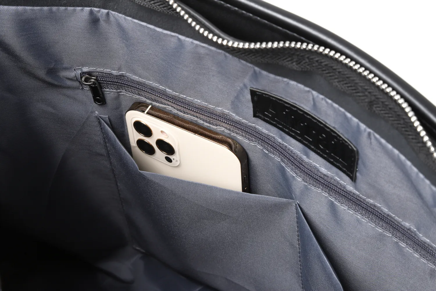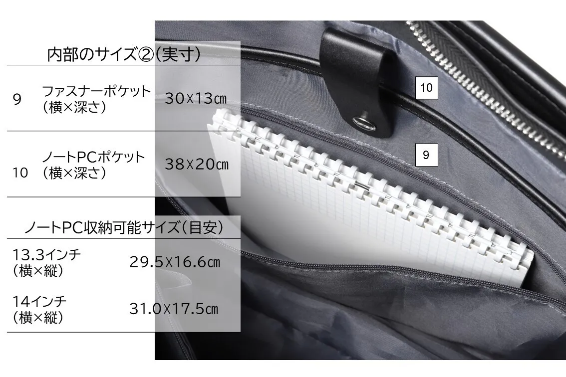 ③貴重品やノートパソコンなどをしっかりと保護できるファスナー付き。