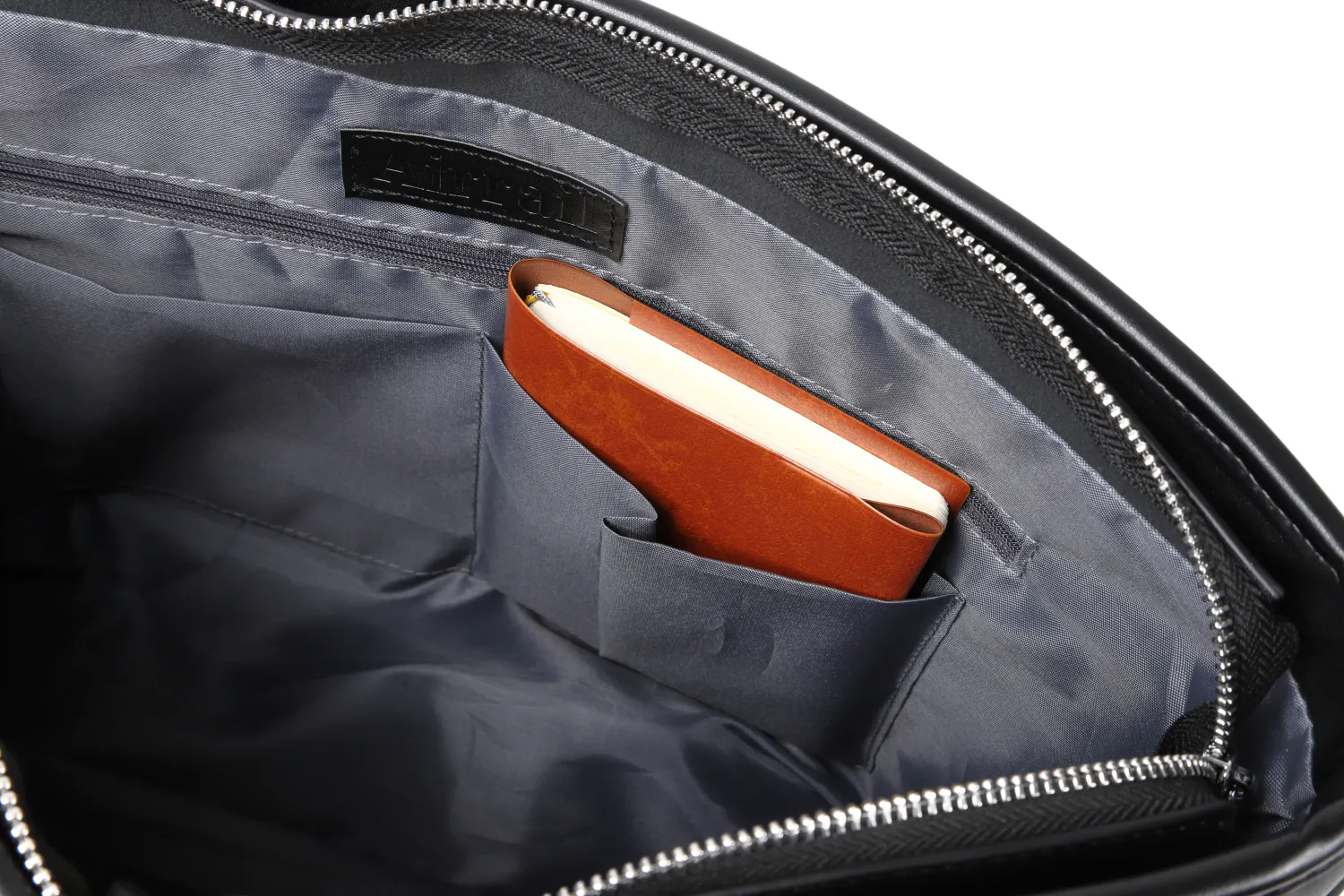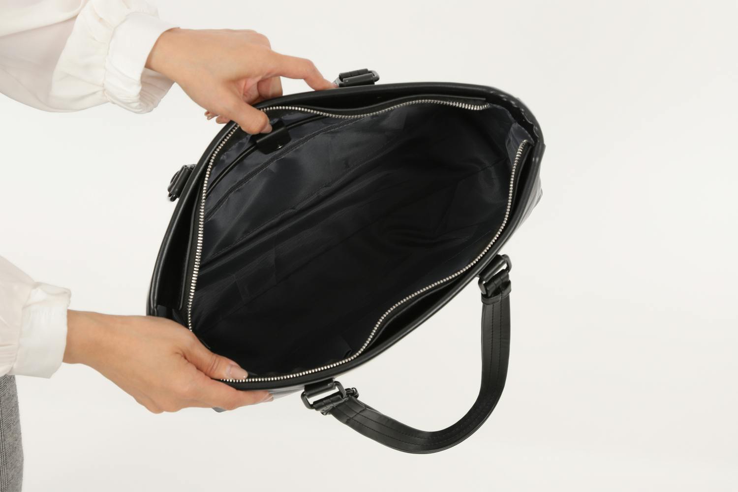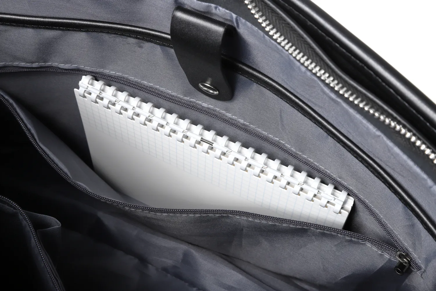 ③貴重品やノートパソコンなどをしっかりと保護できるファスナー付き。