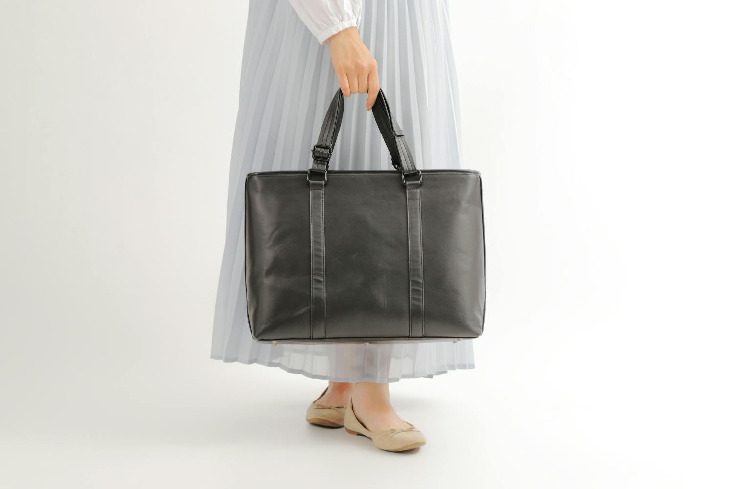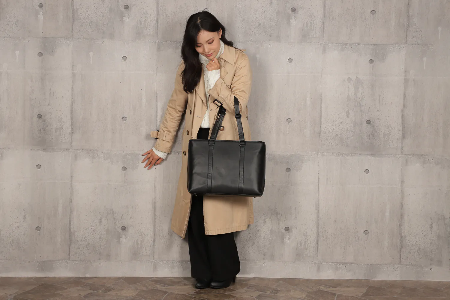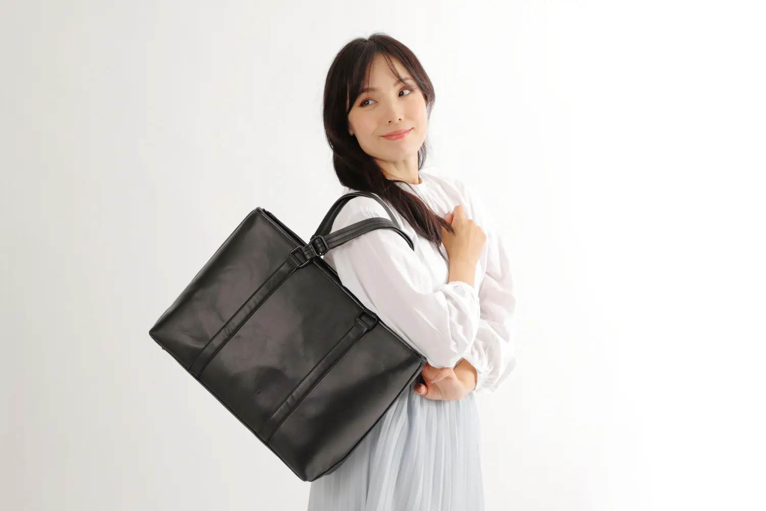 トートバッグの最大のメリットは肩に掛けられることです。しかし、持ち手の高さによってメリットが半減してしまうこも・・・Airraiトートバッグは夏や冬などの異なる服装、男女による肩周りりの違いを考えて、15㎝~30㎝まで持ち手の長さ調整ができるデザインにいたしました。しかも、無段階調節です。
