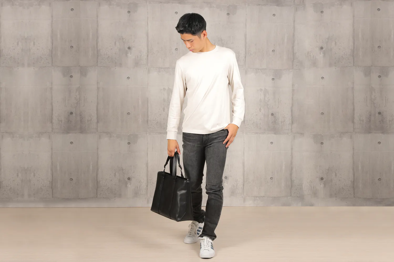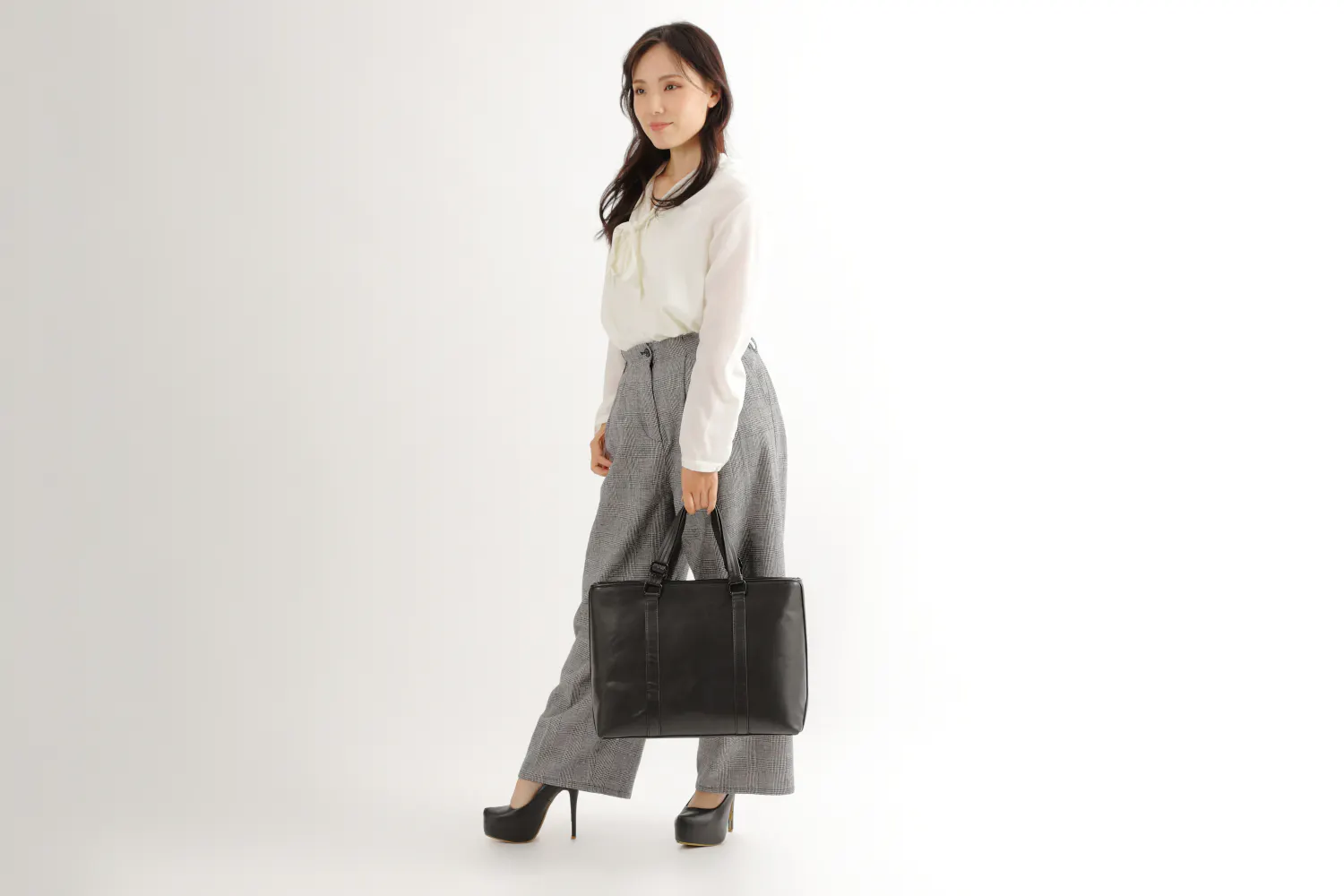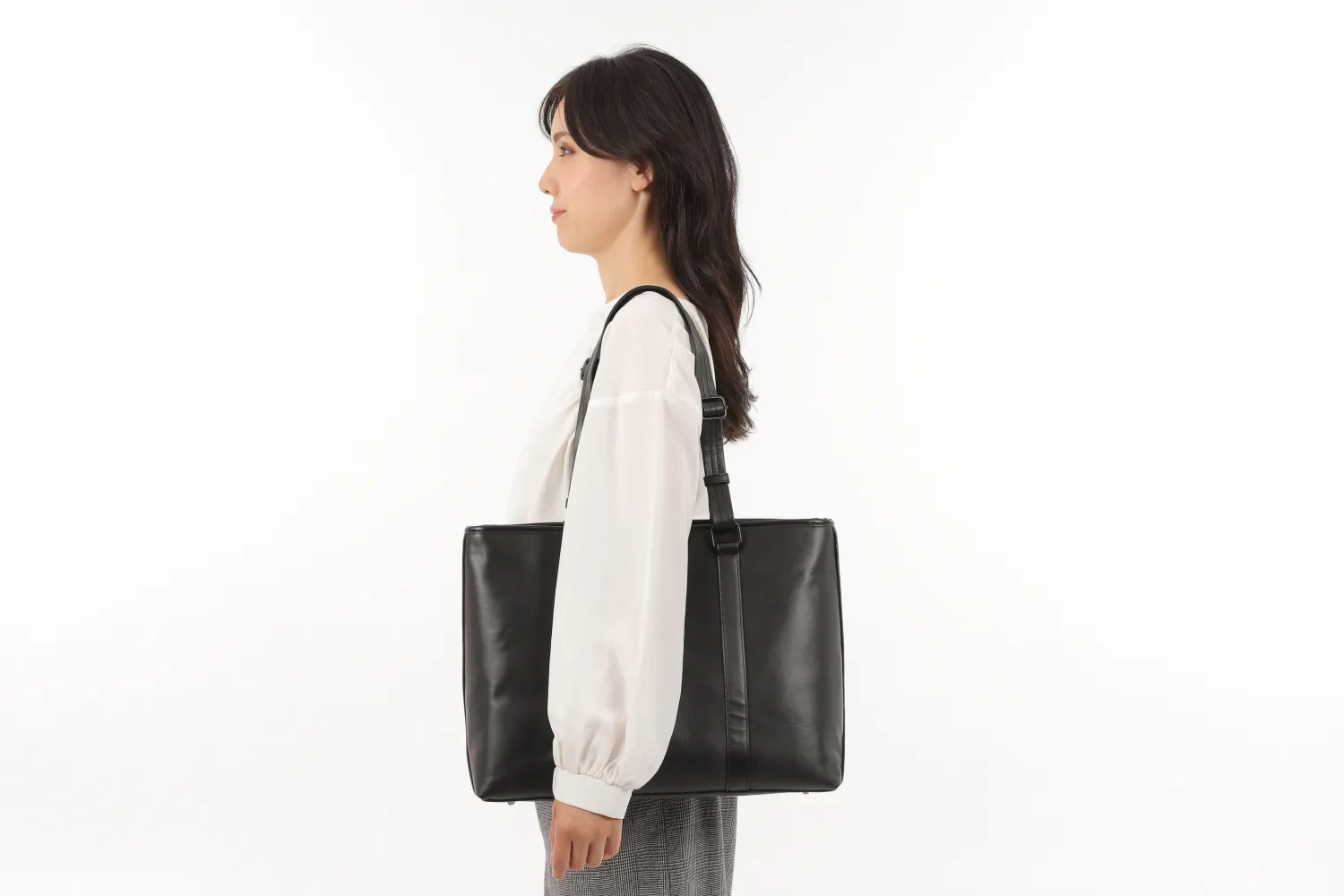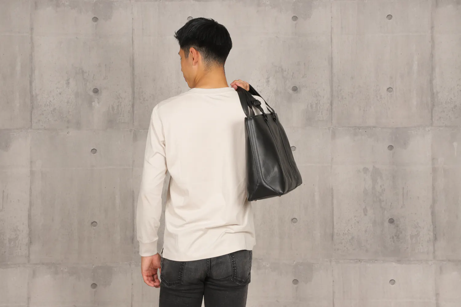 トートバッグの最大のメリットは肩に掛けられることです。しかし、持ち手の高さによってメリットが半減してしまうこも・・・Airraiトートバッグは夏や冬などの異なる服装、男女による肩周りりの違いを考えて、15㎝~30㎝まで持ち手の長さ調整ができるデザインにいたしました。しかも、無段階調節です。