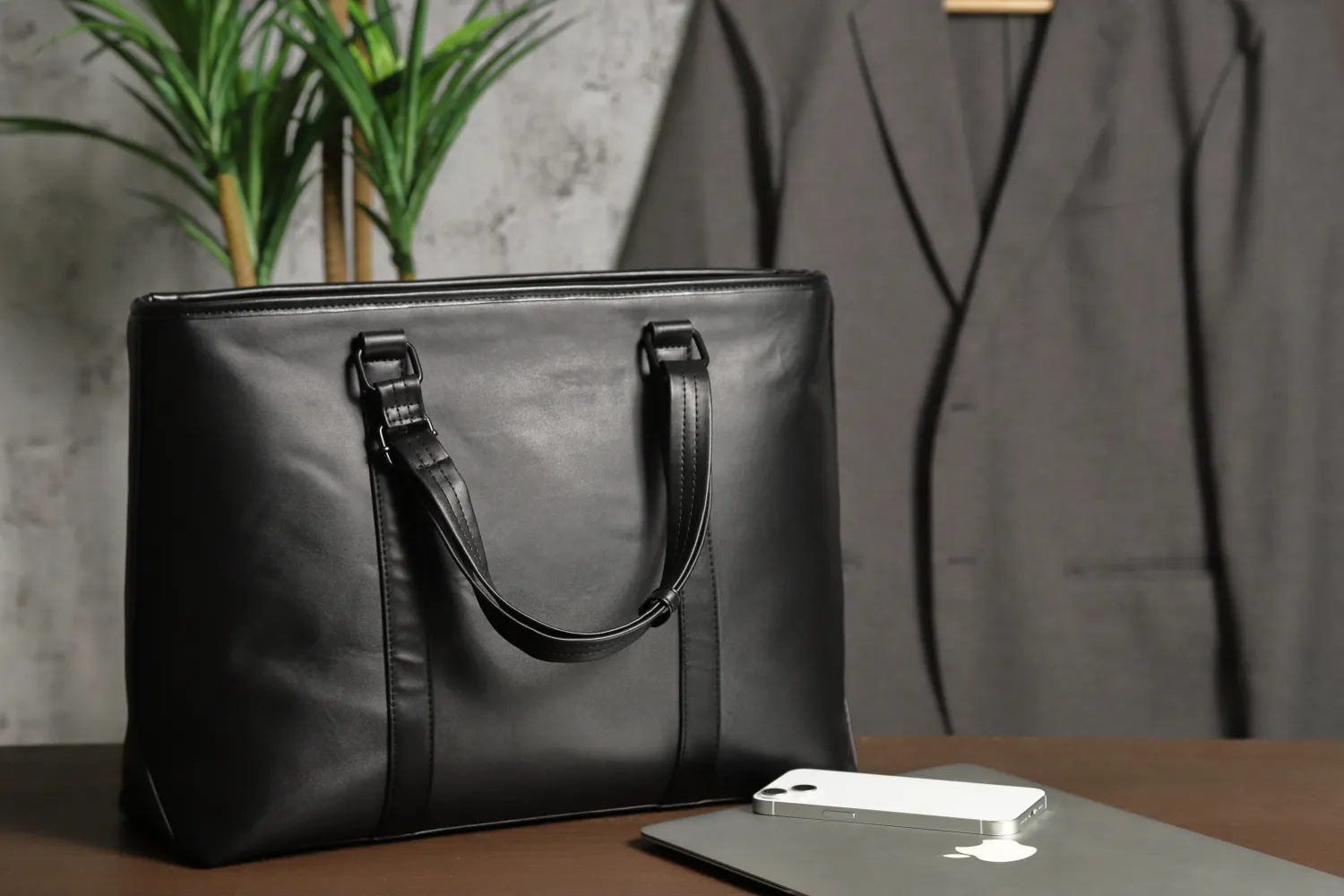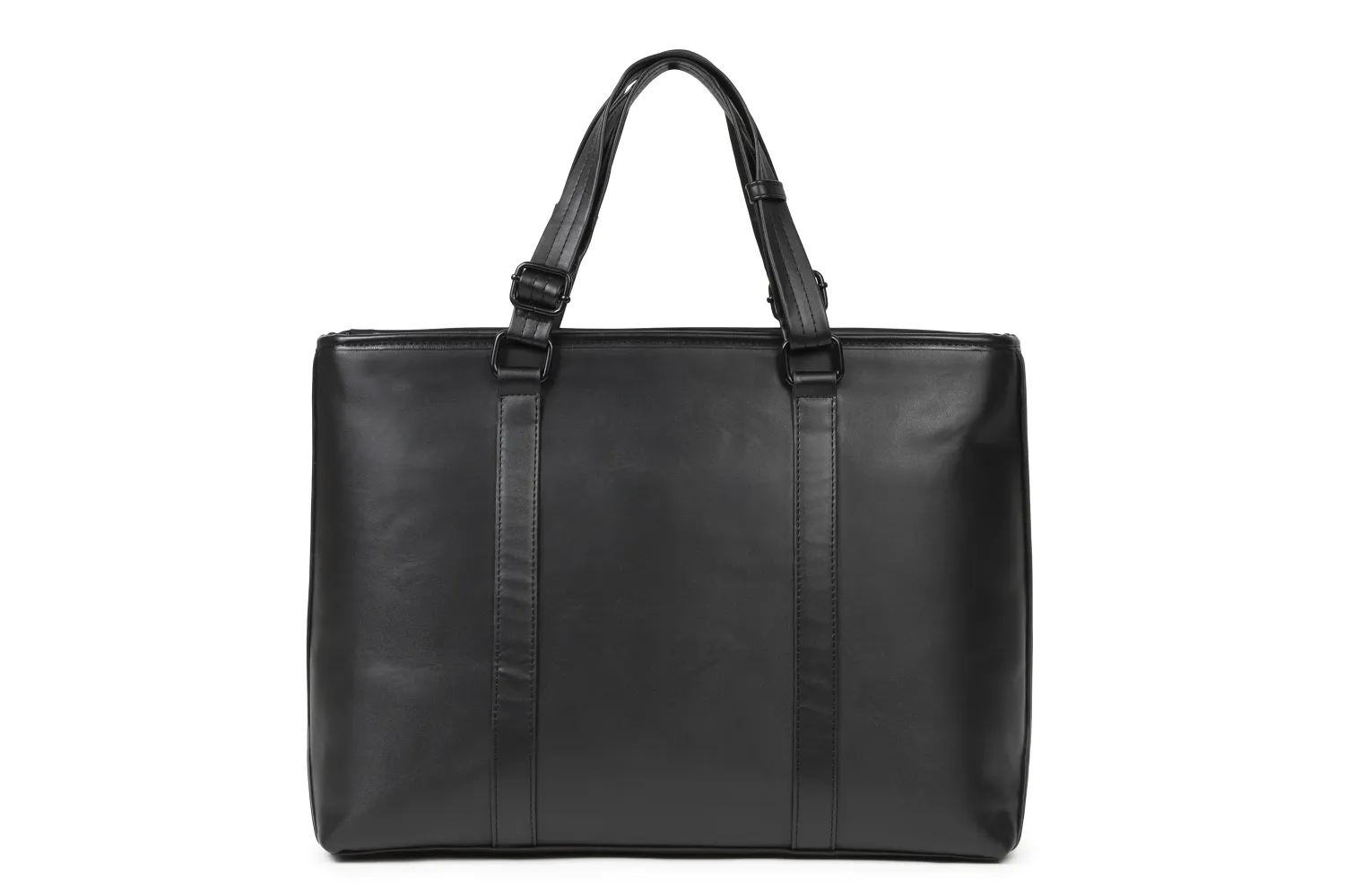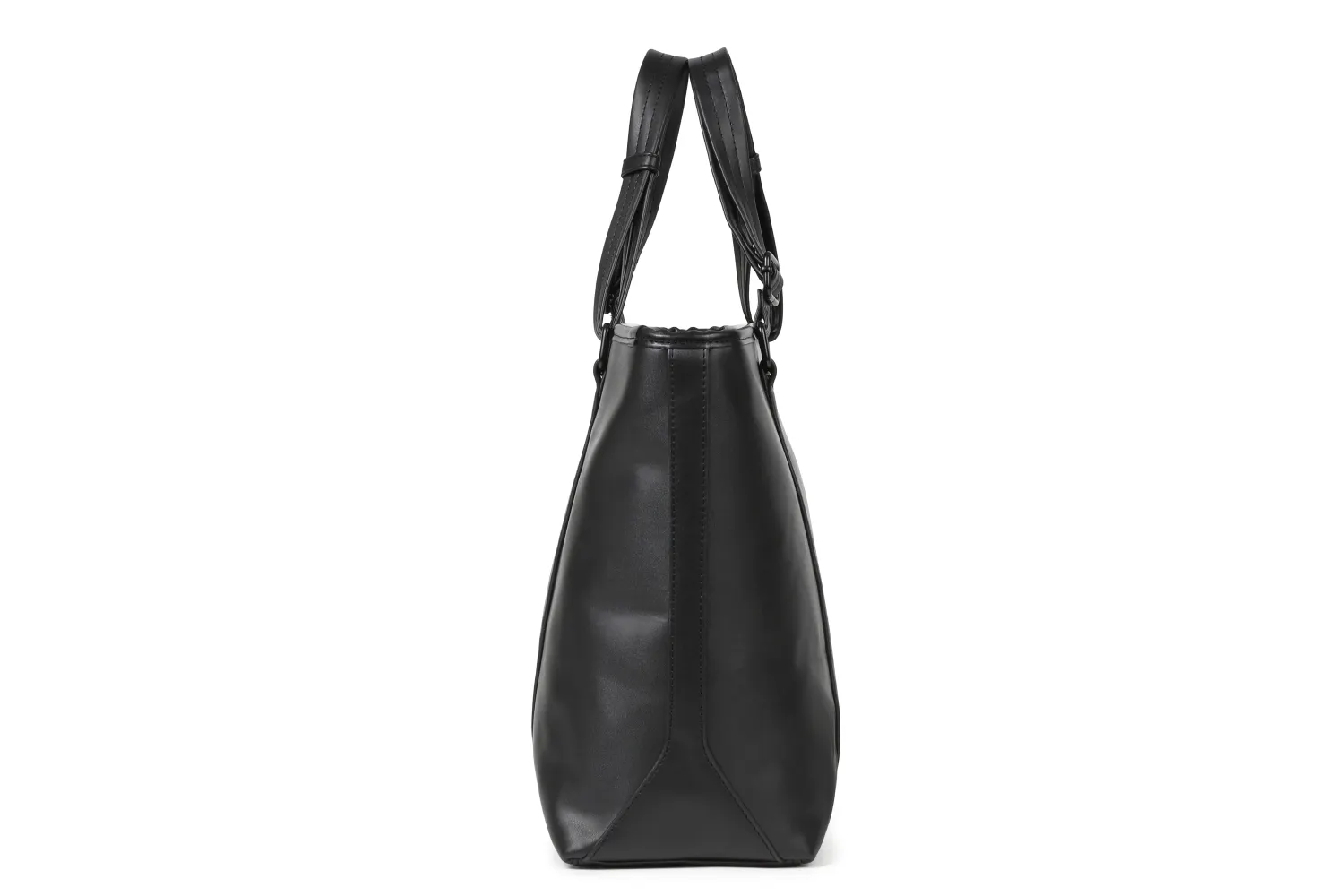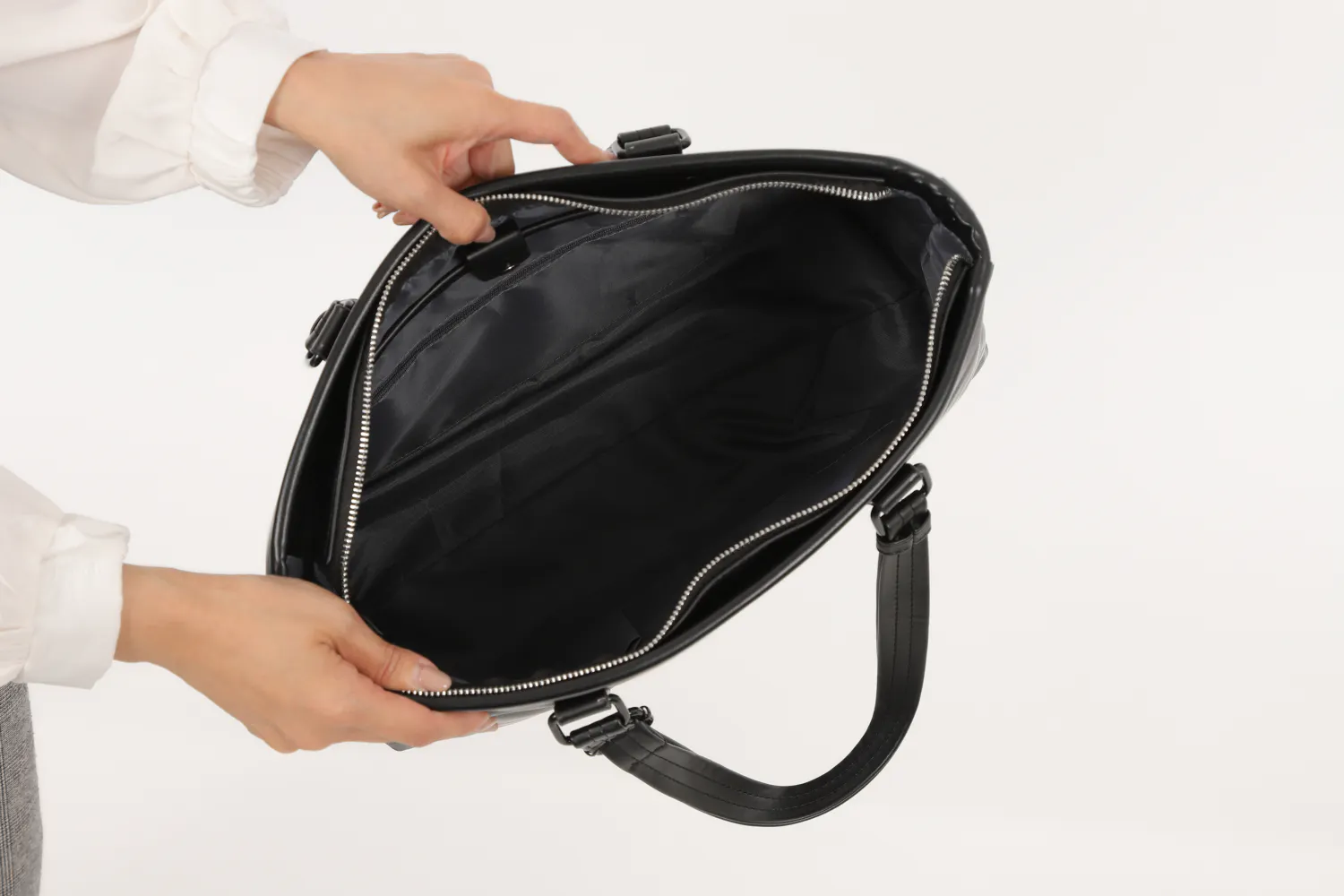 トートバッグは開閉口が大きく開くので、スリなどに中身が抜き取られやすいというリスクや他の人に持ち物を見られてしまうのが気になりますよね。このトートバッグは開閉口がファスナーで閉まるので安心です。ちょっとした荷物の出し入れがしづらいという不便さは、肩回りの長さをゆったり目にしてファスナーの開け閉めを簡単にすることをおススメいたします。ファスナーを閉めたときの収納力はマチ付きなのでほとんど変わることはありません。