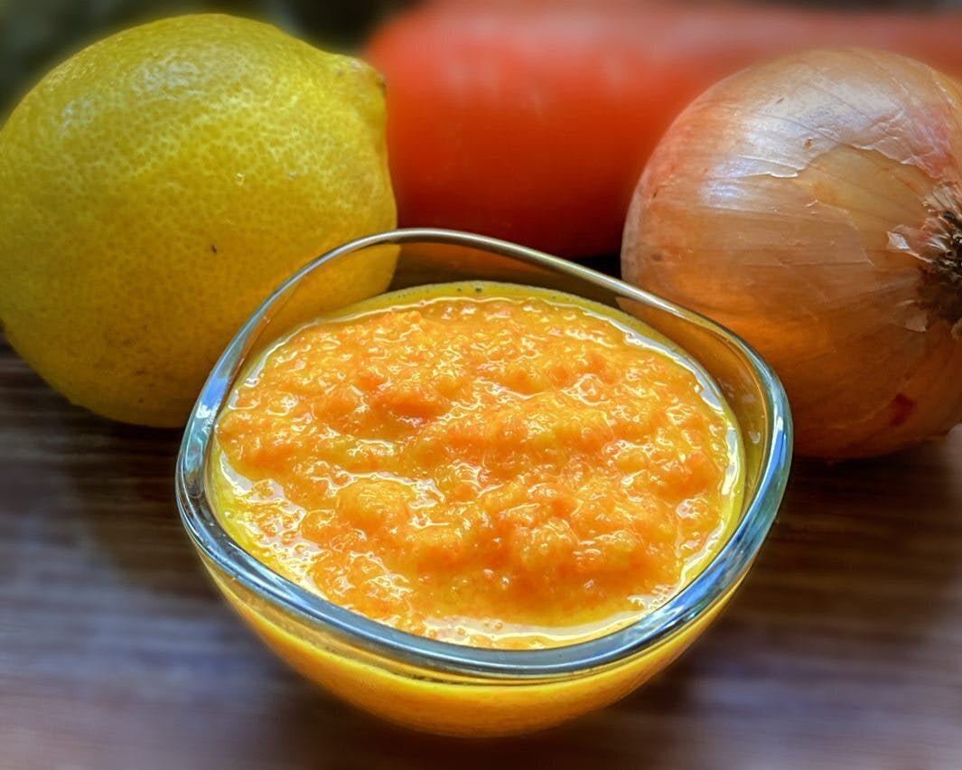 主にニンジンや香味野菜、搾りたてのレモン、エクストラバージンオリーブオイルを使い、たっぷりの野菜サラダと相性抜群なドレッシングに仕上げました。