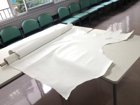 姫路のタンナーさんより、国産の野球ボールに使用される革が届きました。