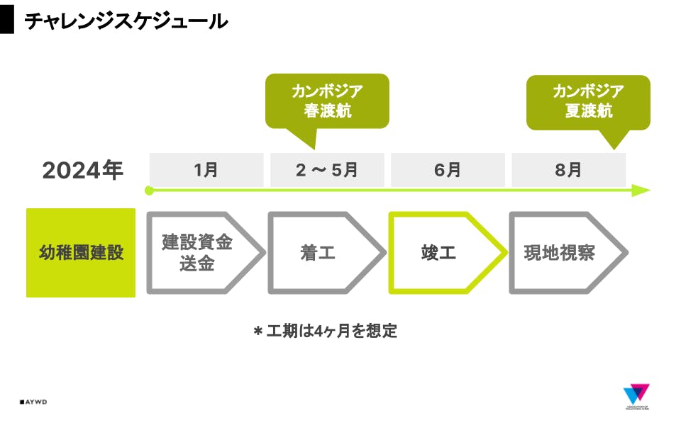 本チャレンジに賛同し、協力してくださった企業の方からは、「幼稚園建設を通じて広範な社会課題の解決に貢献し、初期の投資が長期的な価値を持つ素晴らしい機会を作り出すものであると確信している。組織としては活気にあふれ、熱心なメンバーが協賛イベントやミーティングで活動に取り組んでおり、将来も協力したいと思わせてくれる」と嬉しい声をいただきました。