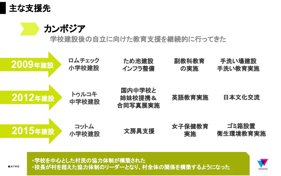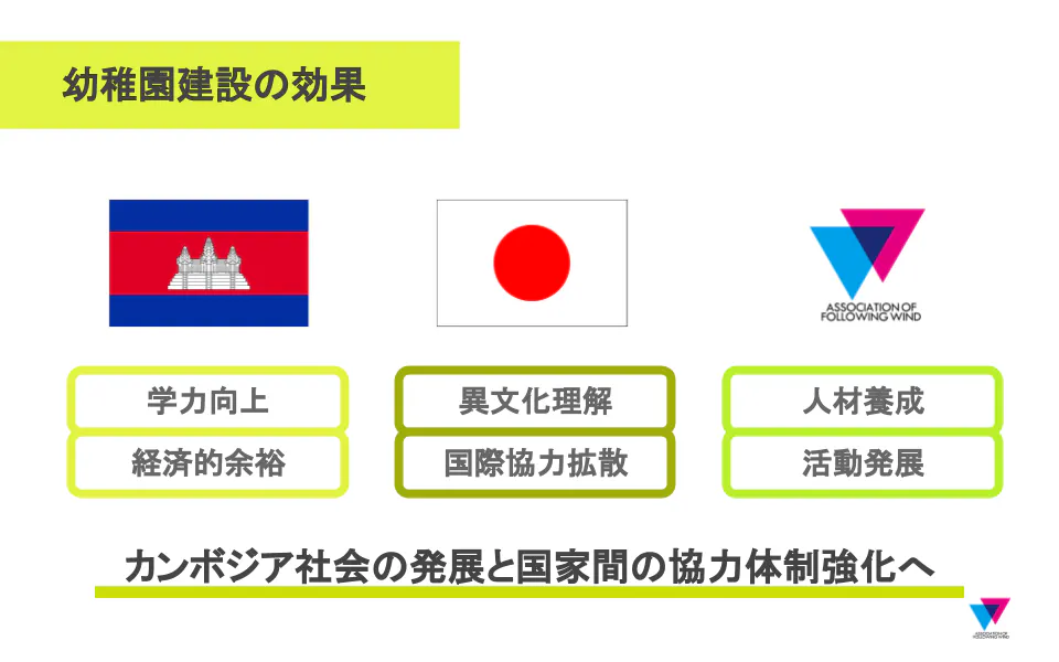 まず、私たちの考えるカンボジア国内への効果についてです。直接的には: