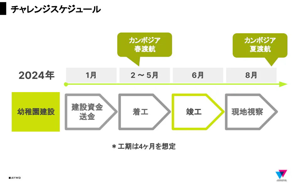 本チャレンジに賛同し、協力してくださった企業の方からは、「幼稚園建設を通じて広範な社会課題の解決に貢献し、初期の投資が長期的な価値を持つ素晴らしい機会を作り出すものであると確信している。組織としては活気にあふれ、熱心なメンバーが協賛イベントやミーティングで活動に取り組んでおり、将来も協力したいと思わせてくれる」と嬉しい声をいただきました。