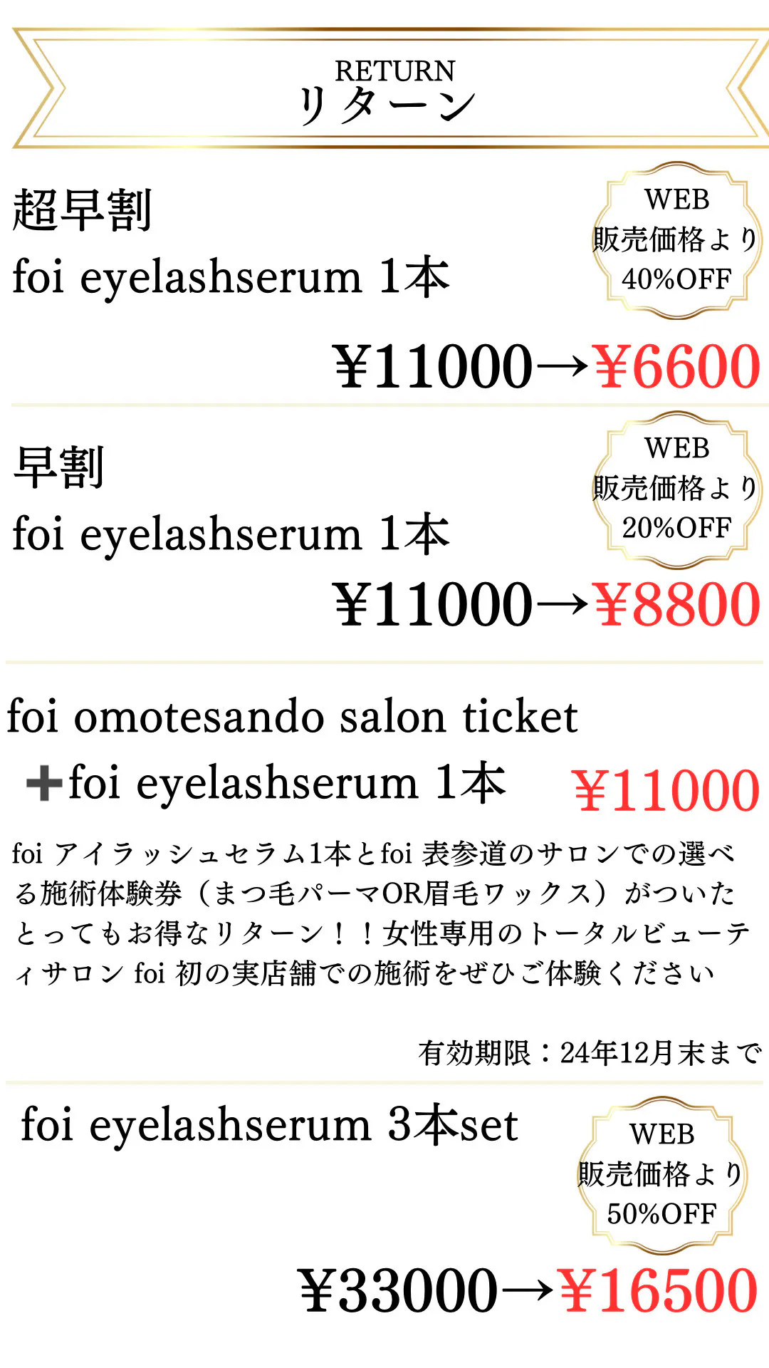 2024/06/27 21:39いつも読んでくださり、ありがとうございます!foi eyelashserum のメンバーの林です。明日は公式Instagramアカウントにて夜22時よりビーガン王子こと、アレックスと共にインスタライブをさせていただきます。是非是非皆さん聞きに来てください。実は私がビーガンを知ったきっかけにもなっている、アレックス。素敵な人間性の彼から学ぶとこはとっても多かったです。影響を沢山受けたこともあり、弊社のまつ毛美容液が、エシカルでビーガンにこだわった、きっかけと言っても過言では無い出会いしでした。そんな彼と製品についてや、彼について楽しくお話しする時間にできればと思っております。こちらのアカウントからぜひチェックしてください公式アカウント@foi_product もっと見る7/1-10 表参道にてPOPUPを行います