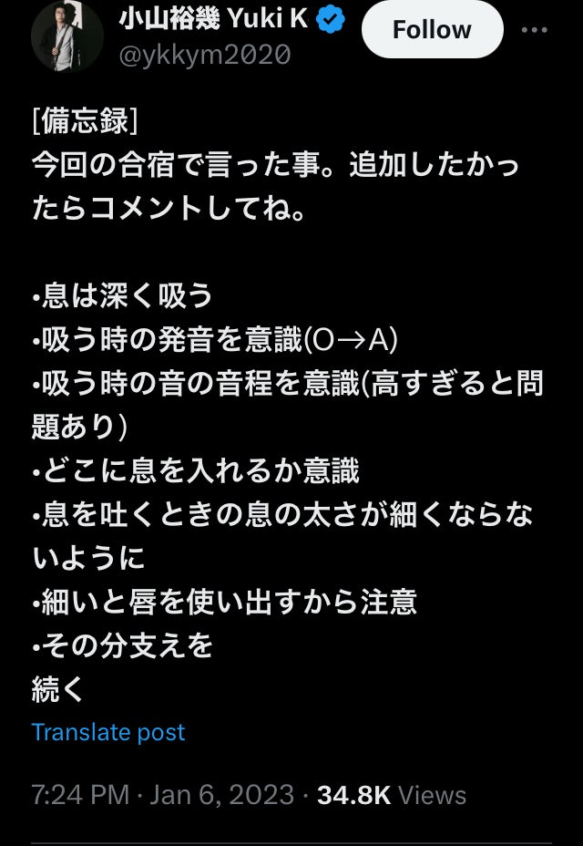 - 吸う時の音の音程を意識(高すぎると問題あり)