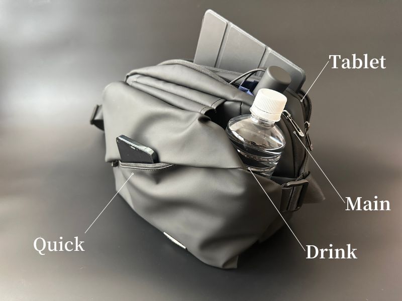 人混みでリュックが邪魔、荷物で手がふさがって動きにくい、家の鍵がすぐ迷子になる、入れたはずの荷物が行方不明、財布がサッと出せずにレジでもたもた電話にサッとでられずかけなおす手間、水を買ったら飲み切れず手荷物に。