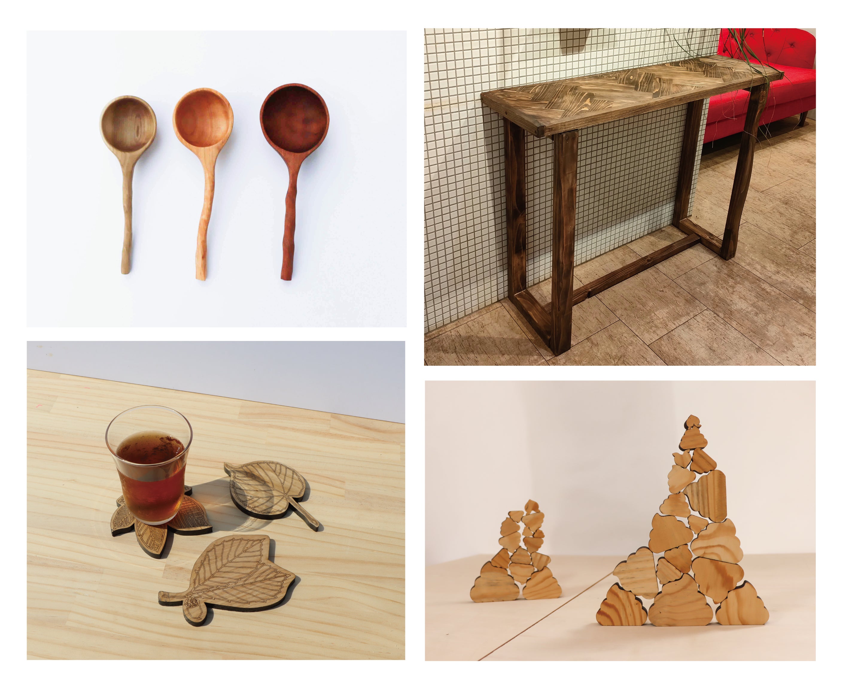 以前は、自分ひとりで木工品作りをやっていましたが、得意分野の違う3人が集まることによって、予想だにしないアイデアが出てくるのが面白いです。