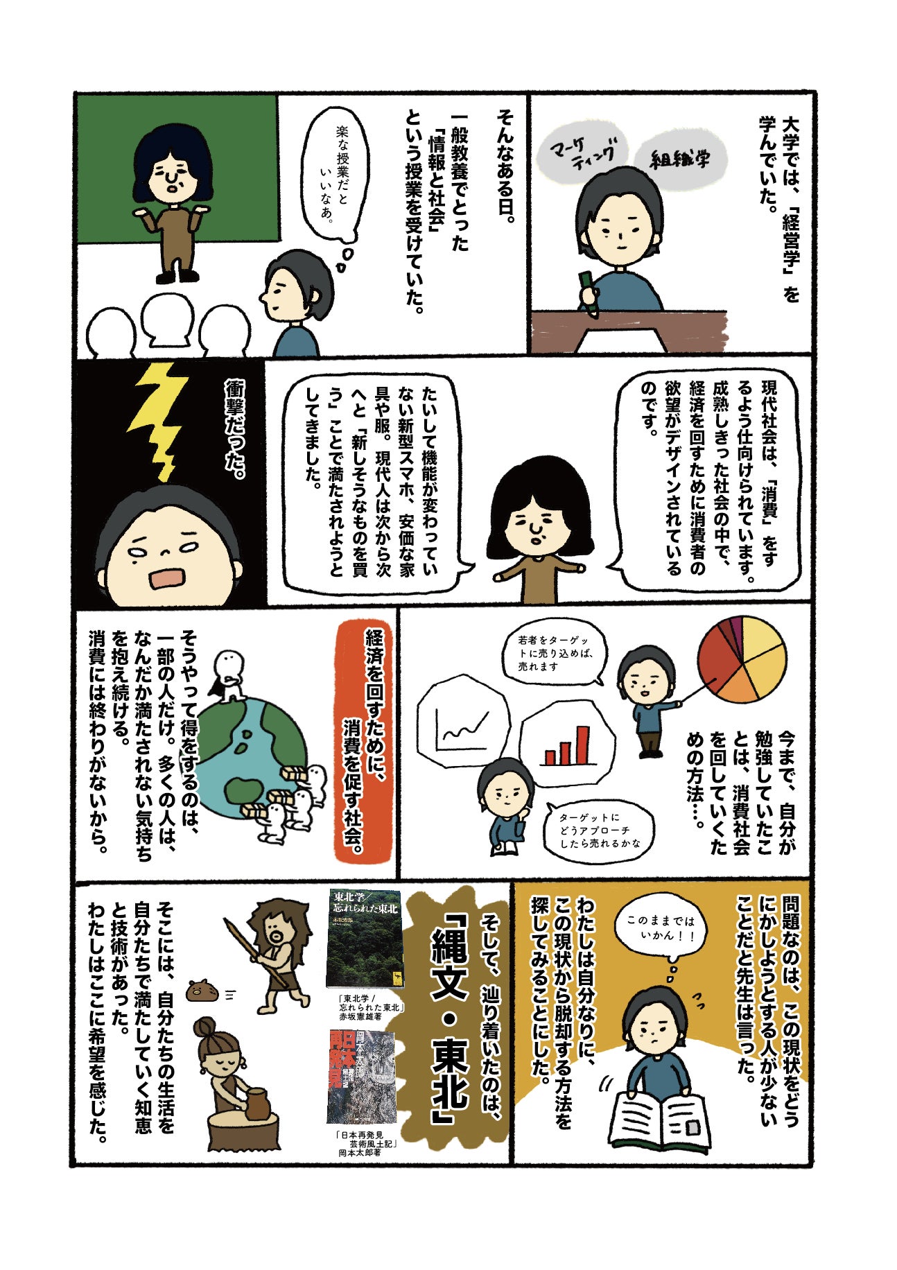 大学では経営学を専攻。在学中に消費や経済を主体として成り立つ社会が持つ様々な問題点(環境破壊、