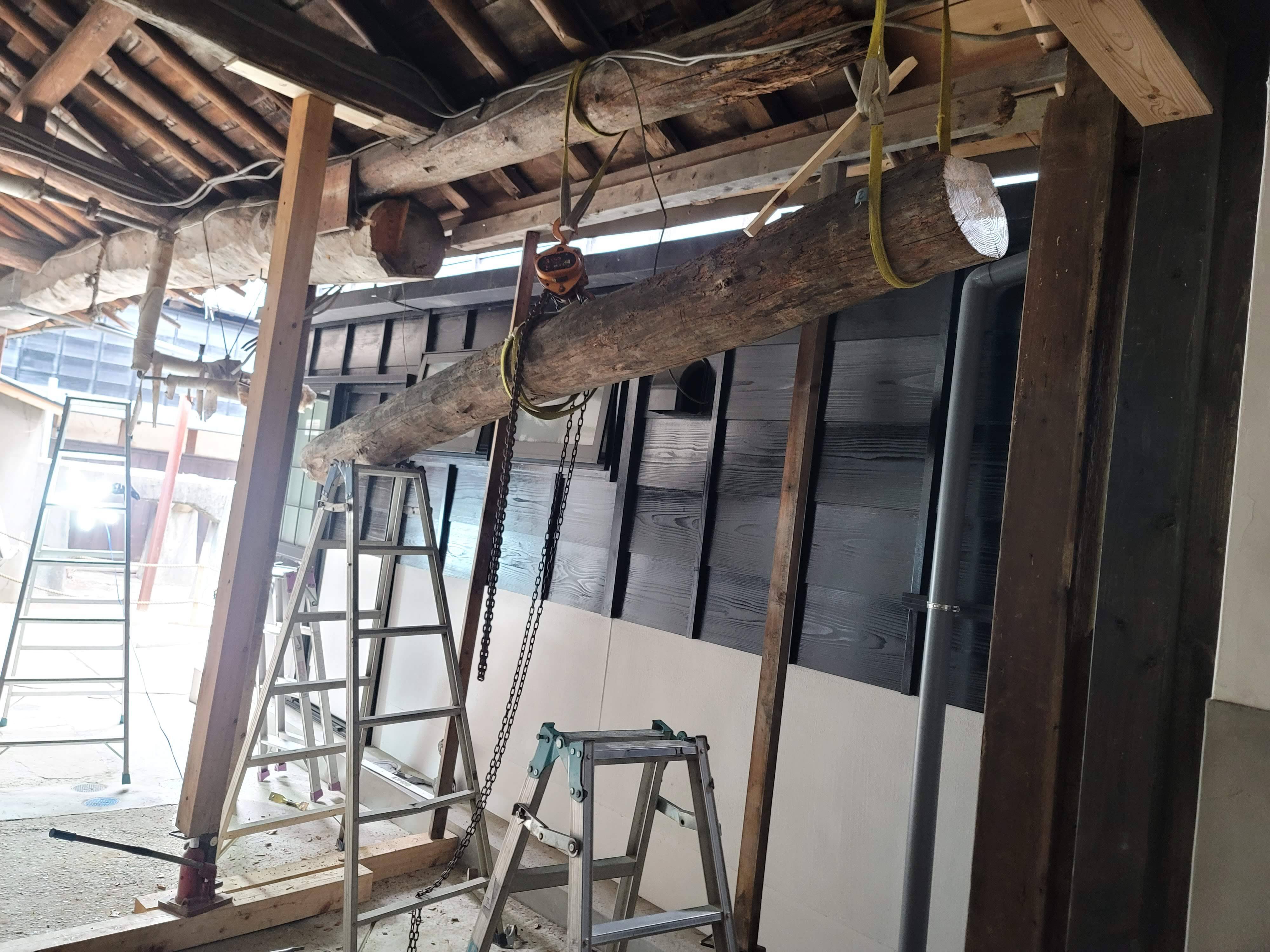現在は取り外し、耐震性強化のために丸太の筋交いを入れております。