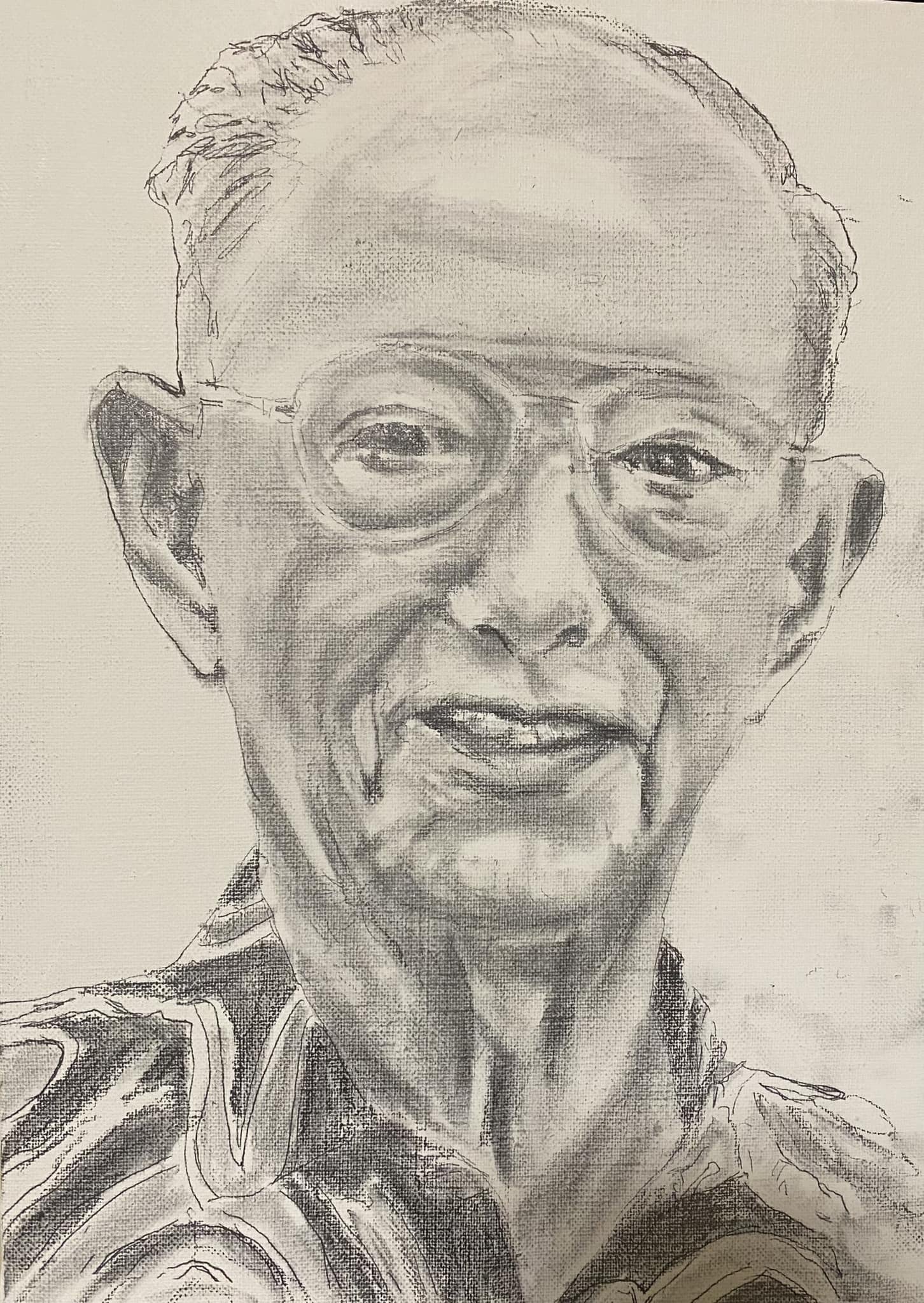 2024/01/24 20:00被爆南方特別留学生、アブドル・ラザクさんの肖像画をスタートしました。 息子さんのズルキフリさんから送っていただいた「写真」を元に 1週間かけて布キャンバスに下書きしました アブドル・ラザクさんの紹介ウィキペディア から 一部 紹介します生誕1925年7月7日ジョージタウン死没2013年7月18日(88歳没)クアラルンプール国籍マレーシアの旗 マレーシア出身校広島大学スルタン・イドリス教育大学職業マラ工科大学講師広島市への原子爆弾投下で被爆した南方特別留学生アブドゥル・ラザク。マレーシア国内でマレー語教育、ルックイースト政策下で日本語教育に尽力した人物。息子が3人おり、その一人がズルキフリ・アブドゥル・ラザク1945年8月6日、爆心地から約1.5kmに位置した大学構内(広島高等師範学校ピアノ室)でペンギラン・ユソフと2人で戸田清教授から数学を受講中に被爆する、ちょうど戸田が2人のそばで話しかけていたところで被爆し、木造2階建の建物が全壊したが机とピアノに守られたため、3人とも無事で自力で脱出した。その後大学の校庭に野宿しながら他の日本人被爆者の救助に尽力している。なお当時広島で被爆した南方特別留学生のうちマレーシア人はアブドル・ラザクとニック・ユソフとサイド・オマールの3人、アブドル・ラザク以外の2人は同年に被爆死しており、アブドル・ラザクはマレーシア人被爆者としては唯一の戦後存命者である。We started a portrait of Abdul Razak, a special student from the A-bombed South. Based on a 'photo' sent to me by his son Zulkifli, I spent a week drafting the portrait on a cloth canvas.I drafted it on a cloth canvas. Introduction of Abdul RazakHere is a partial introduction from WikipediaBirth date7 July 1925GeorgetownDied.18 July 2013 (d. 88)Kuala LumpurNationalityMalaysian flag MalaysiaAlma Mater Alma Mater Alma Mater Alma Mater Alma Mater Alma MaterHiroshima UniversitySultan Idris College of EducationOccupationLecturer, Universiti Teknologi MaraAbdul Razak, a special student from the South who was exposed to the atomic bombing of the city of Hiroshima.He was instrumental in Malay language education in Malaysia and Japanese language education under the Look East policy. Has three sons, one of whom is Zulkifli Abdul Razak.On 6 August 1945, he and Pengilan Yusof were exposed to the atomic bomb while taking mathematics lessons from Professor Kiyoshi Toda in the piano room of Hiroshima Higher Normal School, about 1.5 km from the hypocentre. All three were safe and escaped on their own.They were then camped out in a university playground and helped rescue other Japanese survivors of the atomic bombing. Of the southern students who were exposed to the atomic bombing in Hiroshima at the time, three were Malaysians - Abdul Razak, Nick Yusof and Said Omar - and two others died the same year, making Abdul Razak the only Malaysian survivor of the war. https://ja.m.wikipedia.org/.../%E3%83%8F%E3%82%B8%E3%83... もっと見る