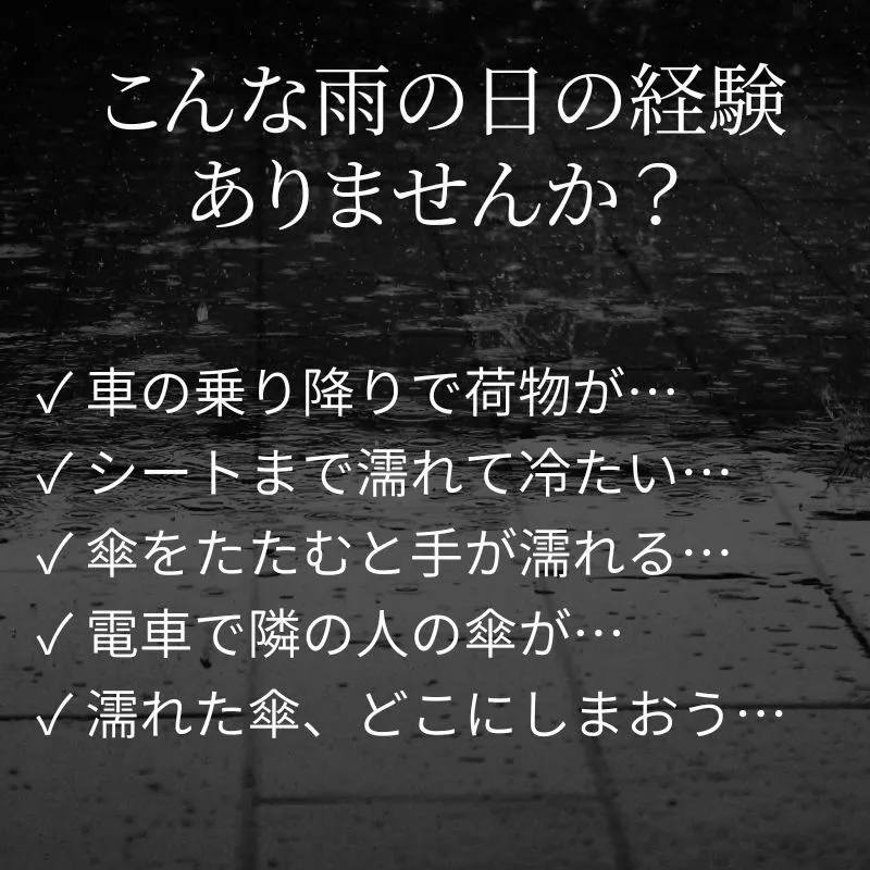 車のシート、マット、電車、バス、家の玄関や会社のエントランス。自分は濡れなくても、手に持っている濡れた傘がまわりを濡らしてしまう。