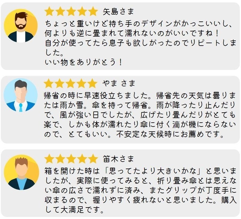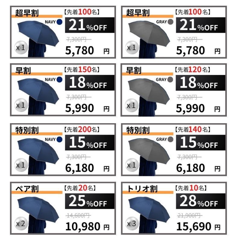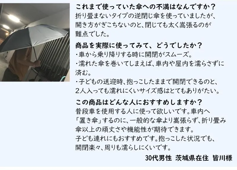 本製品は、通常の傘と比べると決して安い価格ではありません。でも、「雨の日を快適に過ごす」ためのアイデアを盛り込んだ、他にはないビジネスアイテムだと考えております。