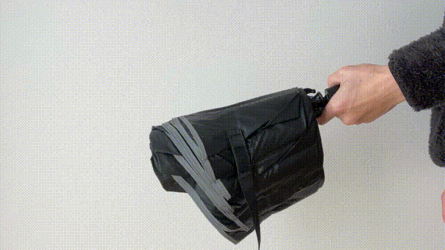 そんな気分が上がらない1日を送らないように、通常の傘とは逆に、雨粒が内側へ折りたたむ構造に。