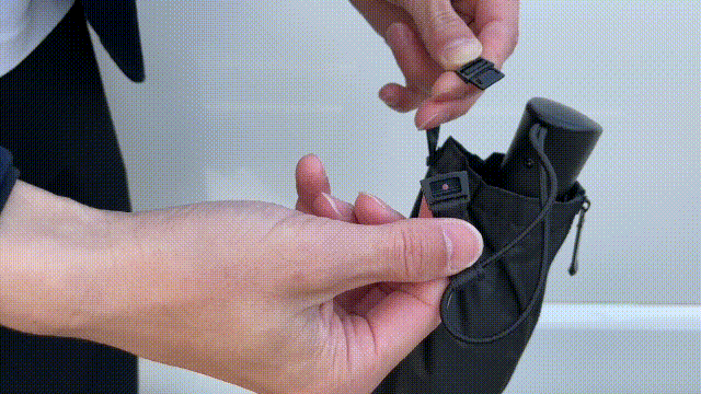 本体とカバーが差し込みのバックルでつながっているので、バックのヒモなどに掛けることが可能です。