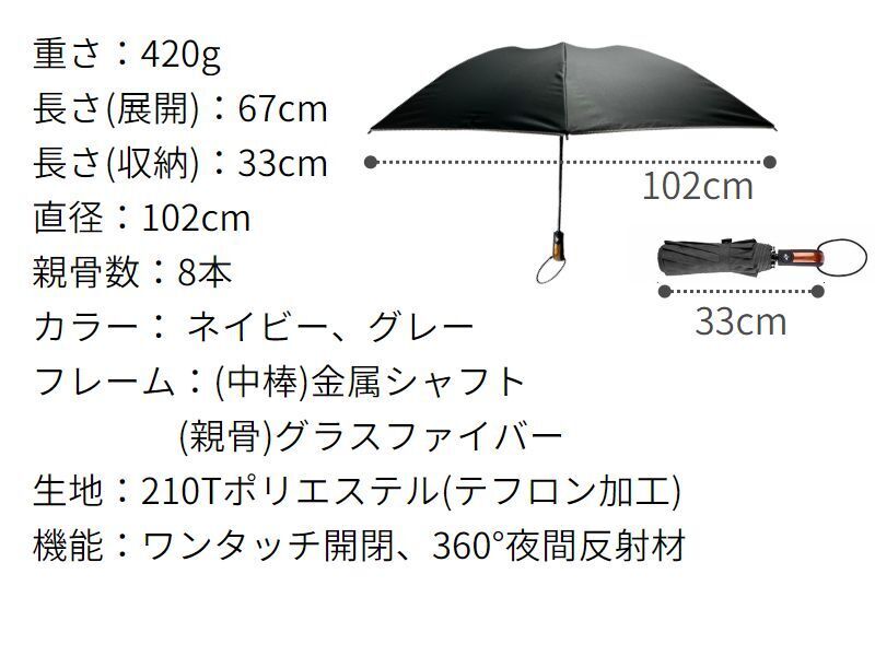 そこで、傘の直径を折りたたみ傘でも大きめの102センチに。