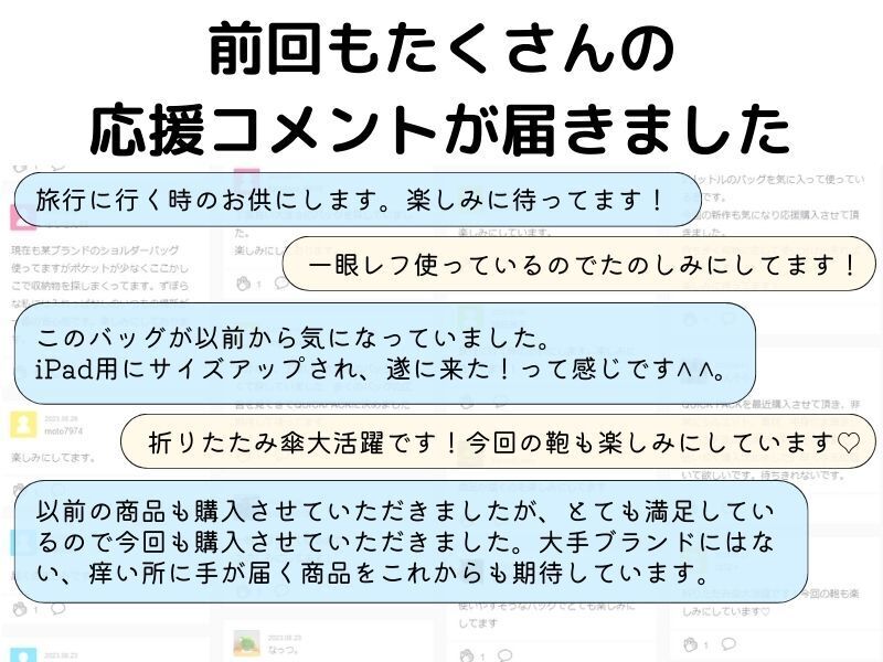 2026/03/27 12:30支援者のみなさまいつもプロジェクトの応援ありがとうございます。本日12時よりあなたのワークライフを快適にするボディバッグ「2サイズ同時の限定販売」が公開されました。【タブレット対応】QUICK PACK 11sは「大容量なコンパクトモデル」。普段タブレットや電子書籍とマイボトル程度で通勤される方に最適のサイズ。男性女性問わず“体にフィット”するサイズ感で、1,000名近い方にご愛用頂いています。一方、【A4/PC対応】QUICK PACK 15sはリュックは大きい、ショルダーでは小さい...そんなニーズに応える15インチサイズのワーカーズバッグ。ノートPCとA4の書類、充電器にマウスなど、ガジェットをまるっと持ち歩くことが多い方にピッタリ。どちらも斜め掛けでサッと掛けられ、荷物も入れやすい横長の形状。歩きや自転車での通勤にはもちろん、車や電車で荷物のつけ外しが多い方にも便利なバッグ。カジュアルすぎない、でもライトに使える。新しいバッグとフレッシュな気持ちで新年度を迎えてみませんか!?ぜひチェックしてみてください!>>【タブレット対応】QUICK PACK 11s>>【A4/PC対応】QUICK PACK 15s もっと見る