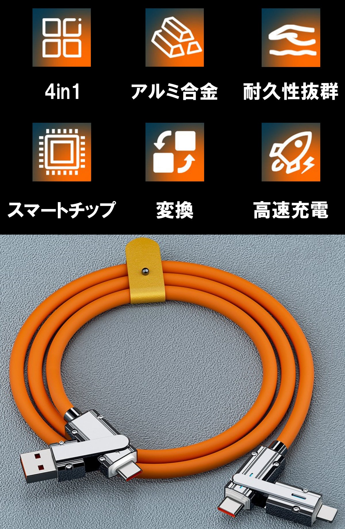 シリコンケーブルで耐久性を大幅に上昇させ様々な充電方法を使える逸品!