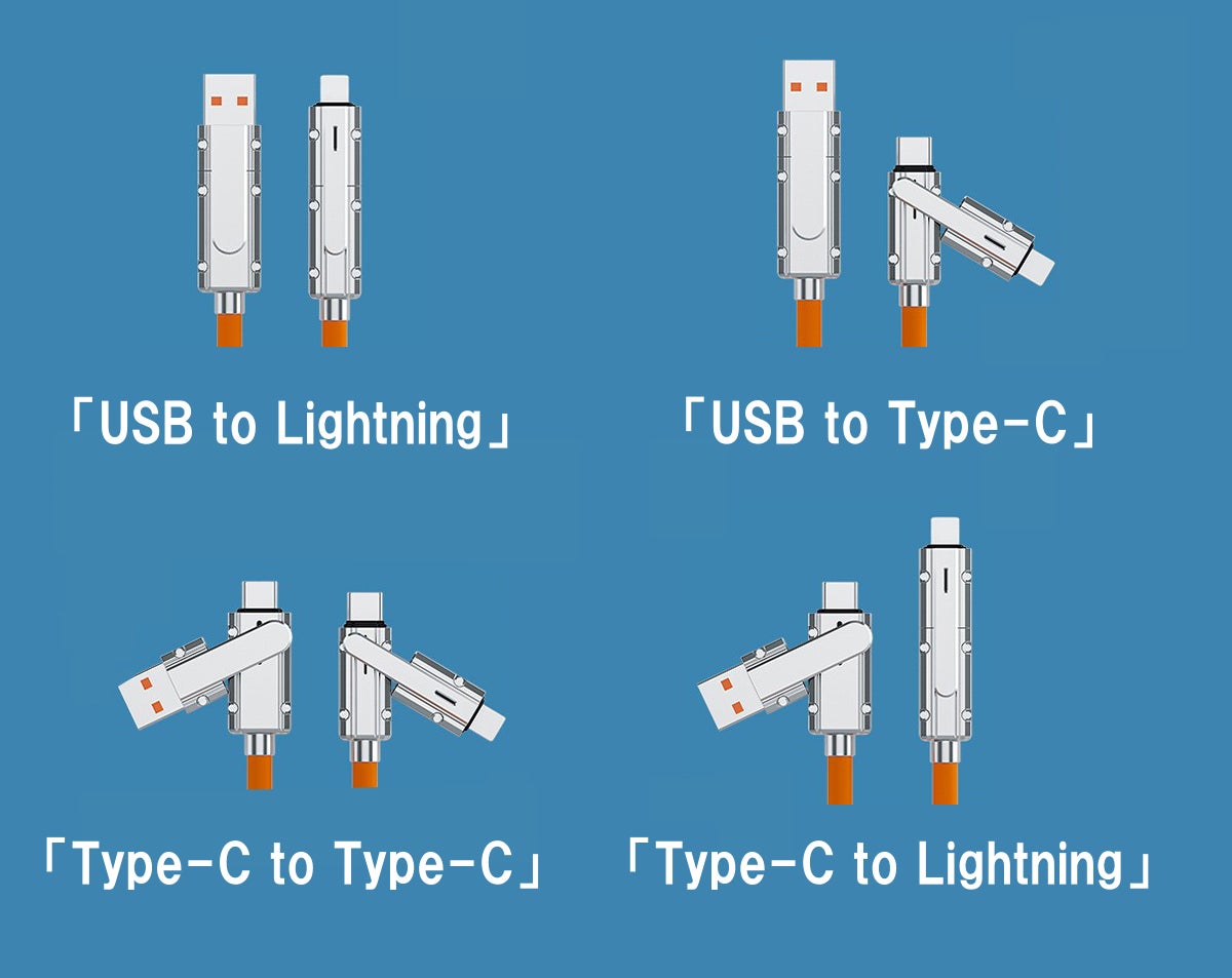 「Type-C to Type-C」「Type-C to Lightning」「USB to Type-C」「USB to Lightning」