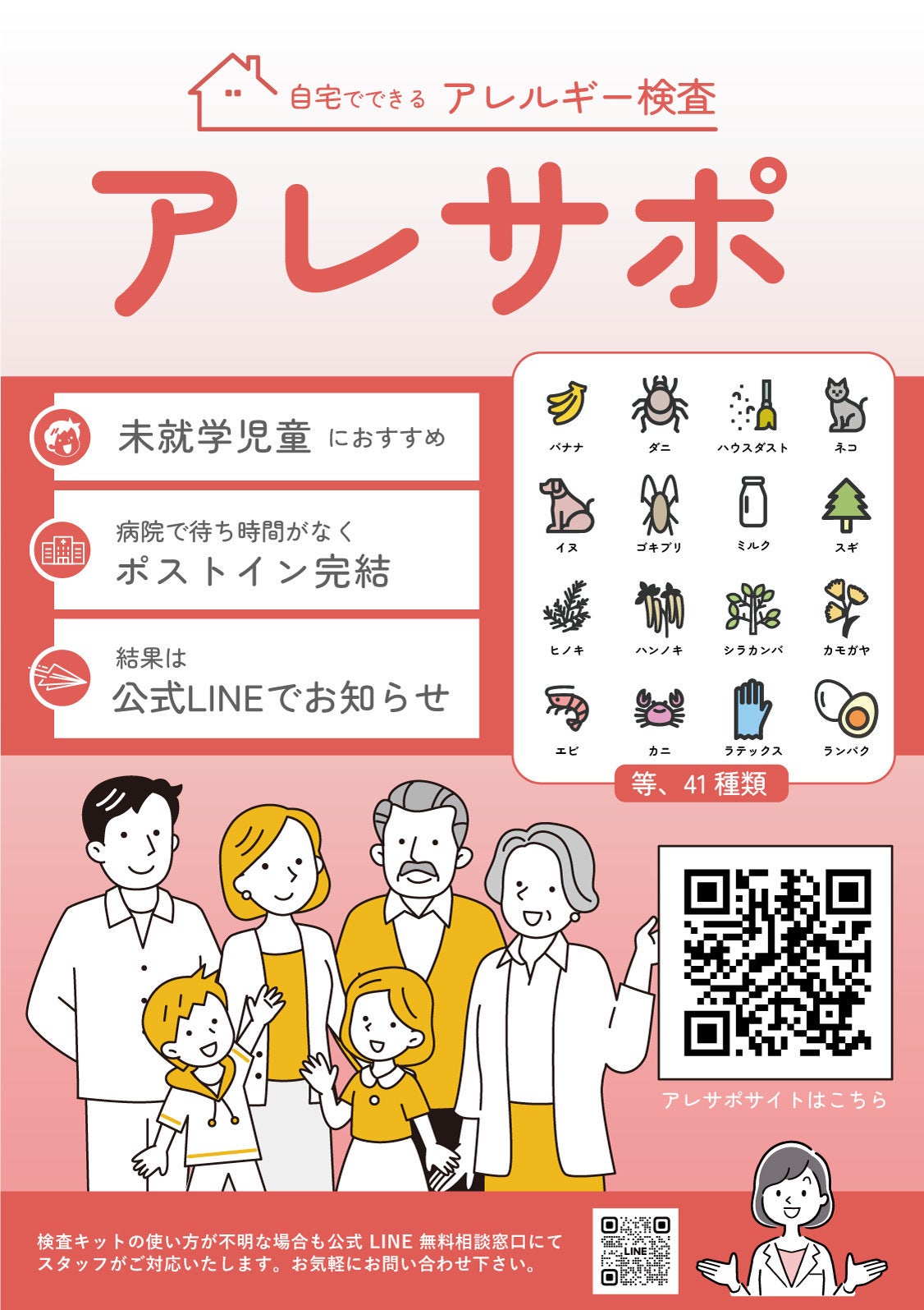 給食が始まる&外食が増えるこどもたちに無料でアレルギー検査を提供することにより、アナフィラキシーショックなど命の危険を回避することを目的としています。こどもたちが口にするものは、ご家庭の食生活によっても異なり、保護者の好き嫌いやアレルギー疾患等により、食卓に上らない食材があったりします。そのため、検査しない限り、気付かないアレルギー疾患を持っている可能性を否定することはできません。