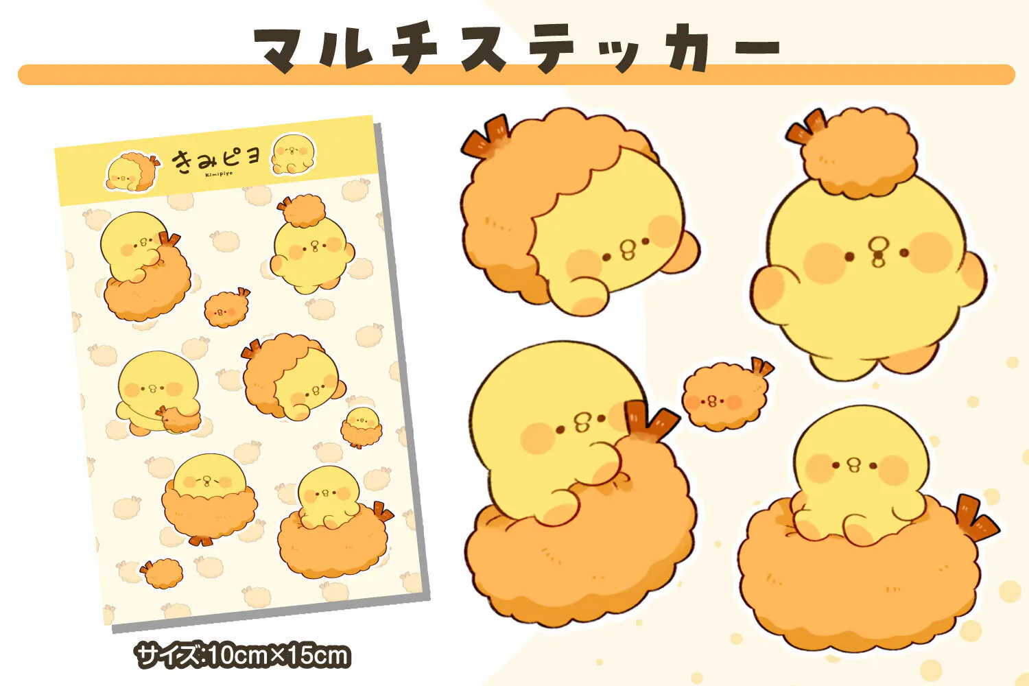 エビフライときみピヨの可愛いシールが1枚にたくさんついています!