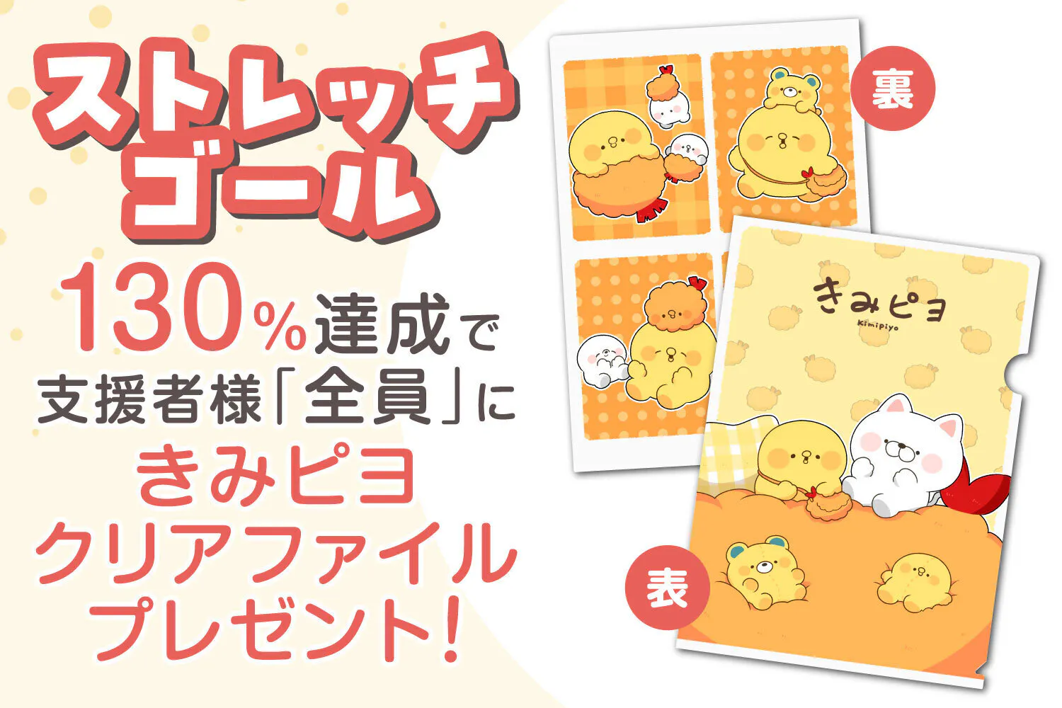 130%達成で「きみピヨクリアファイル」をご支援者様全員にプレゼント♪
