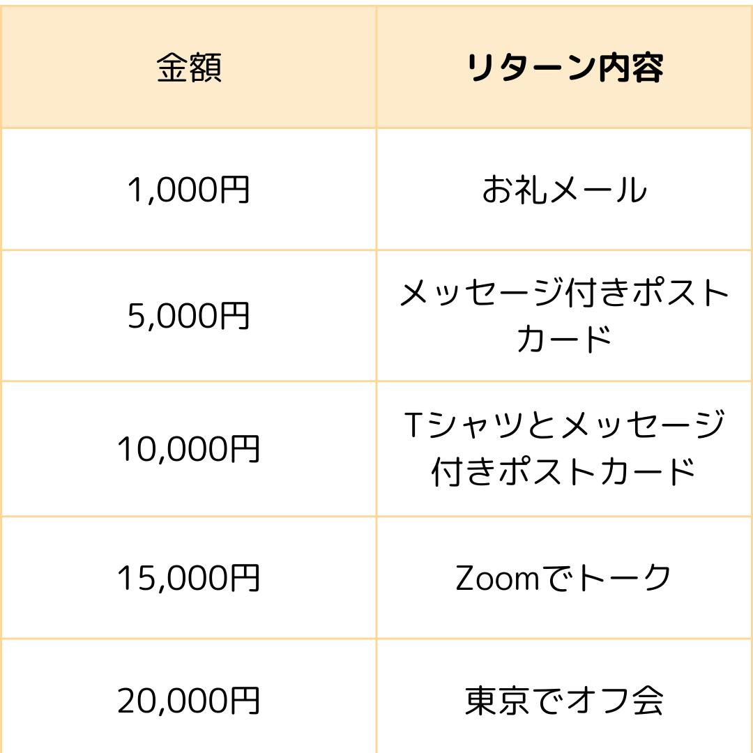 以上が本プロジェクトでご用意したリターンです。