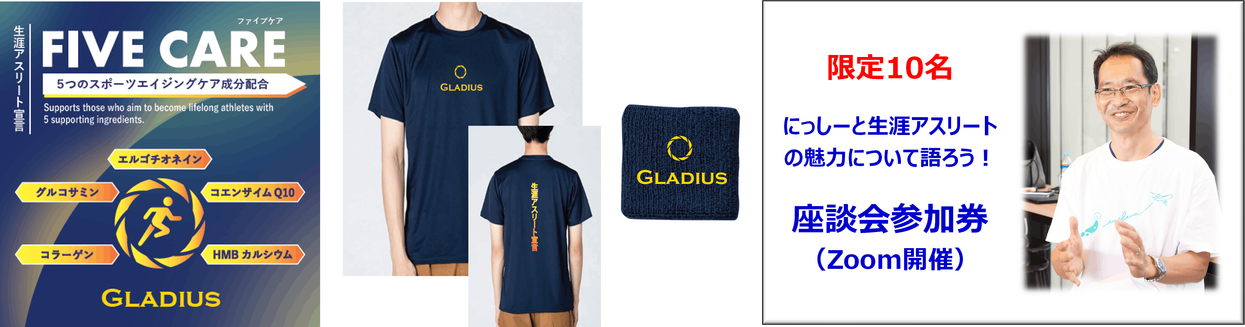 みなさんこんにちは。生涯アスリート応援サプリメント『GLADIUS FIVE CARE』開発担当のにっしーです。
