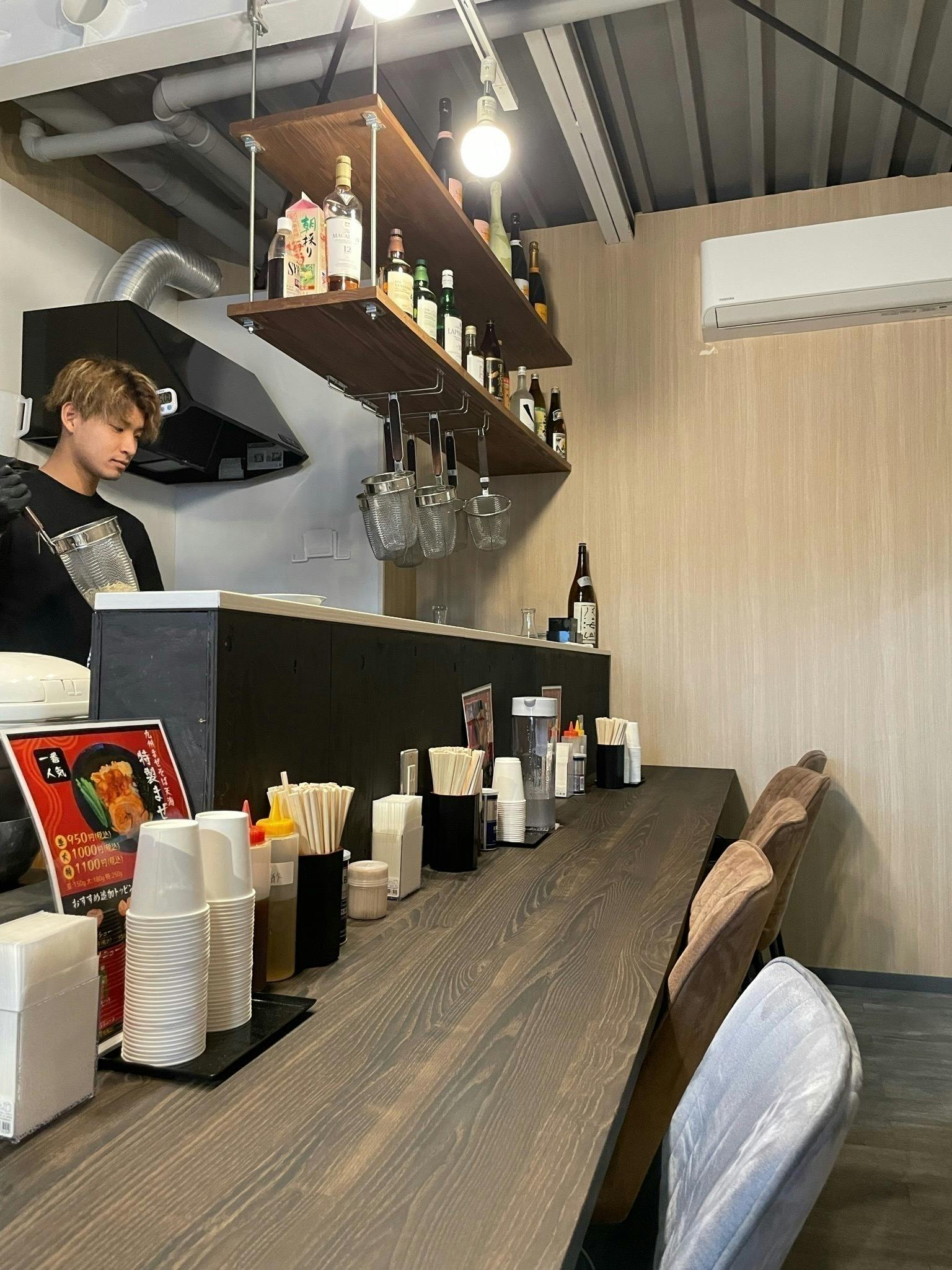 お昼はまぜそば屋、夜はバーで営業をさせていただいております。