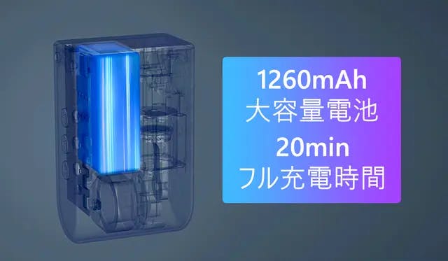 Type-C急速充電に対応しており、フル充電にはわずか20分かかります。