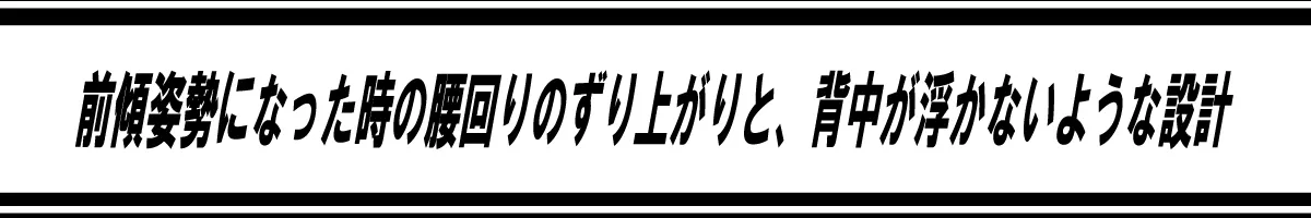 オートバイに乗って前傾姿勢になると、腰部分がどんどんずり上がってきたり、背中とパンツの間に隙間が出来て不快な思いをしたことはありませんか?