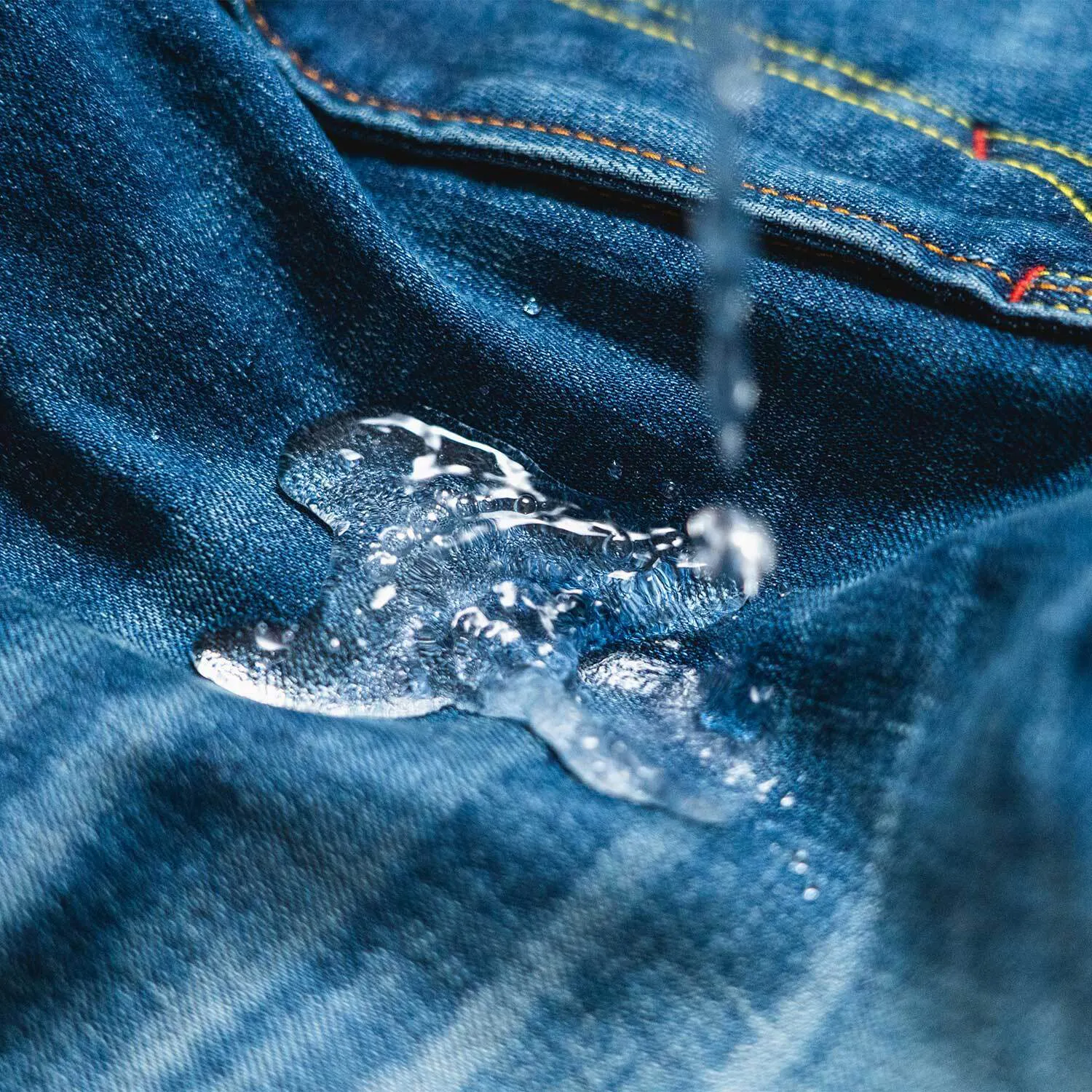 RADARM(ラダーム)ライディングジーンズは撥水加工がされているので、少しくらいの雨なら水を弾いてくれます。