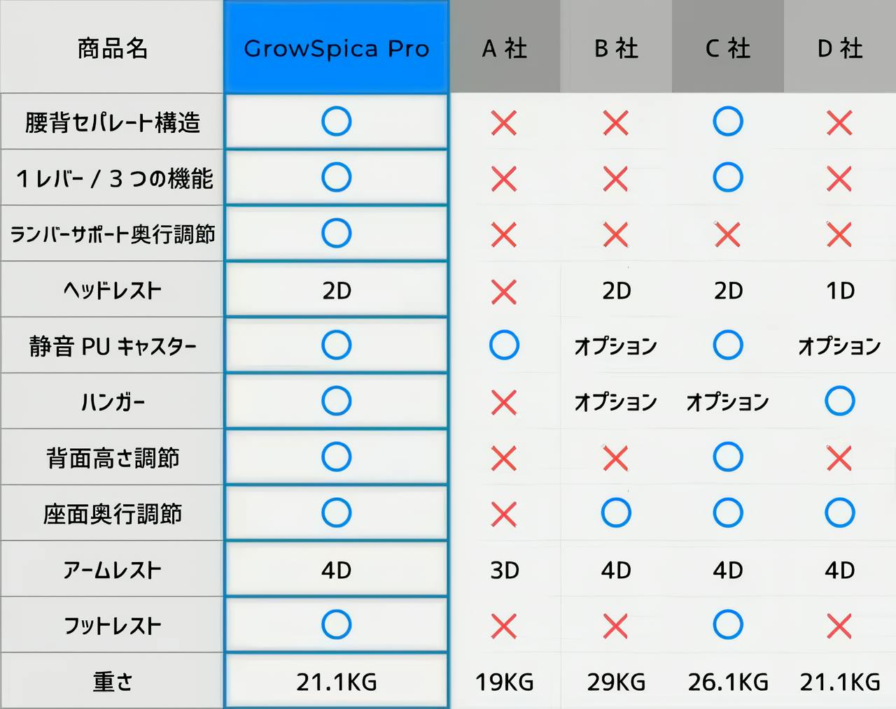 【デスクワークの不快感・疲れを軽減し集中力を維持するワークチェア、GrowSpica(グロウスピカ)】